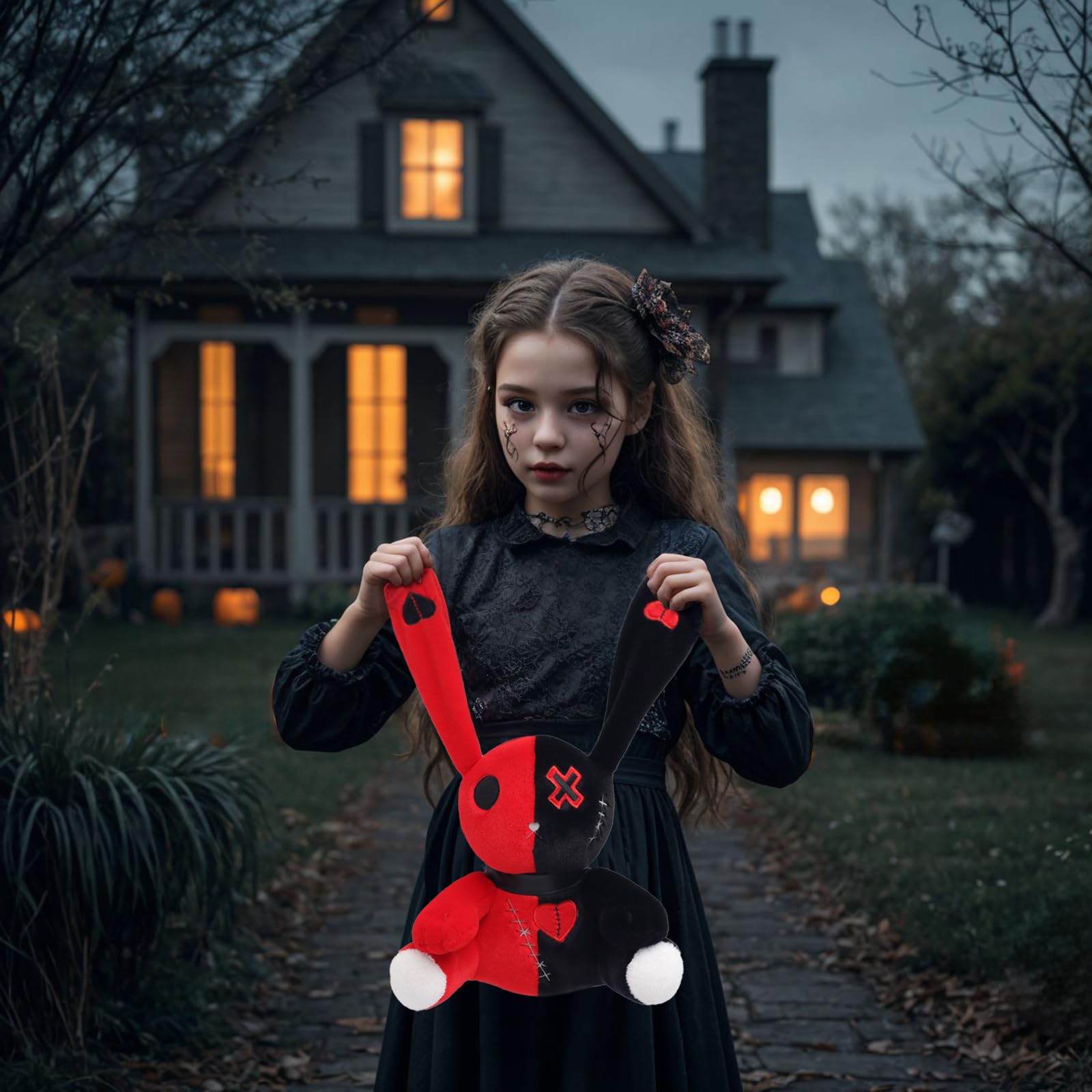View compareQleewei Goth Bunny Plush Rabbit Horror Plushies Easter Stuffed Animal Creepy Spooky Bunny Stuffed Animal Crazy Rabbit Plushie To