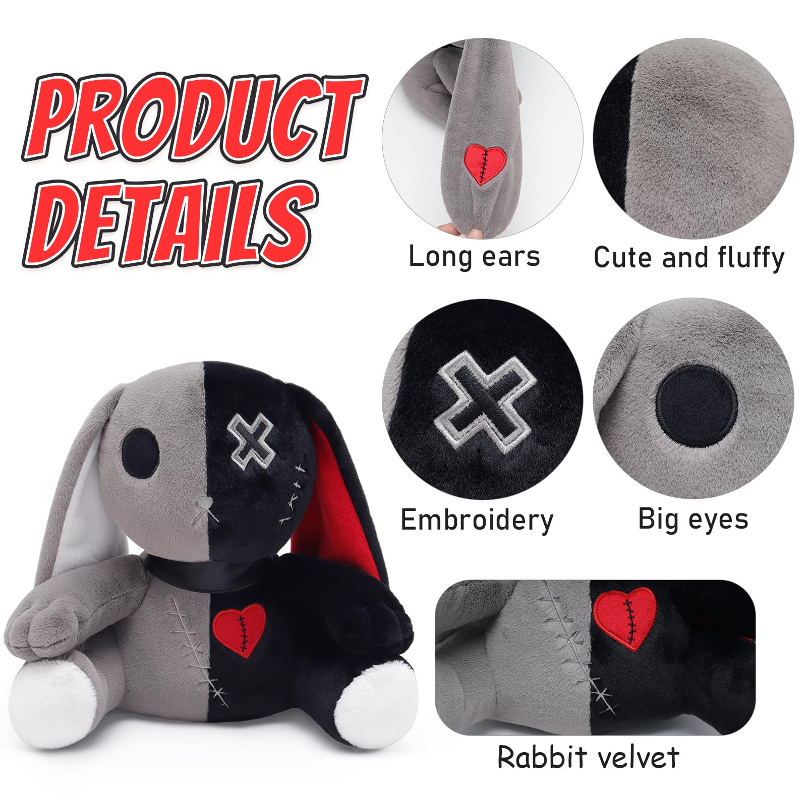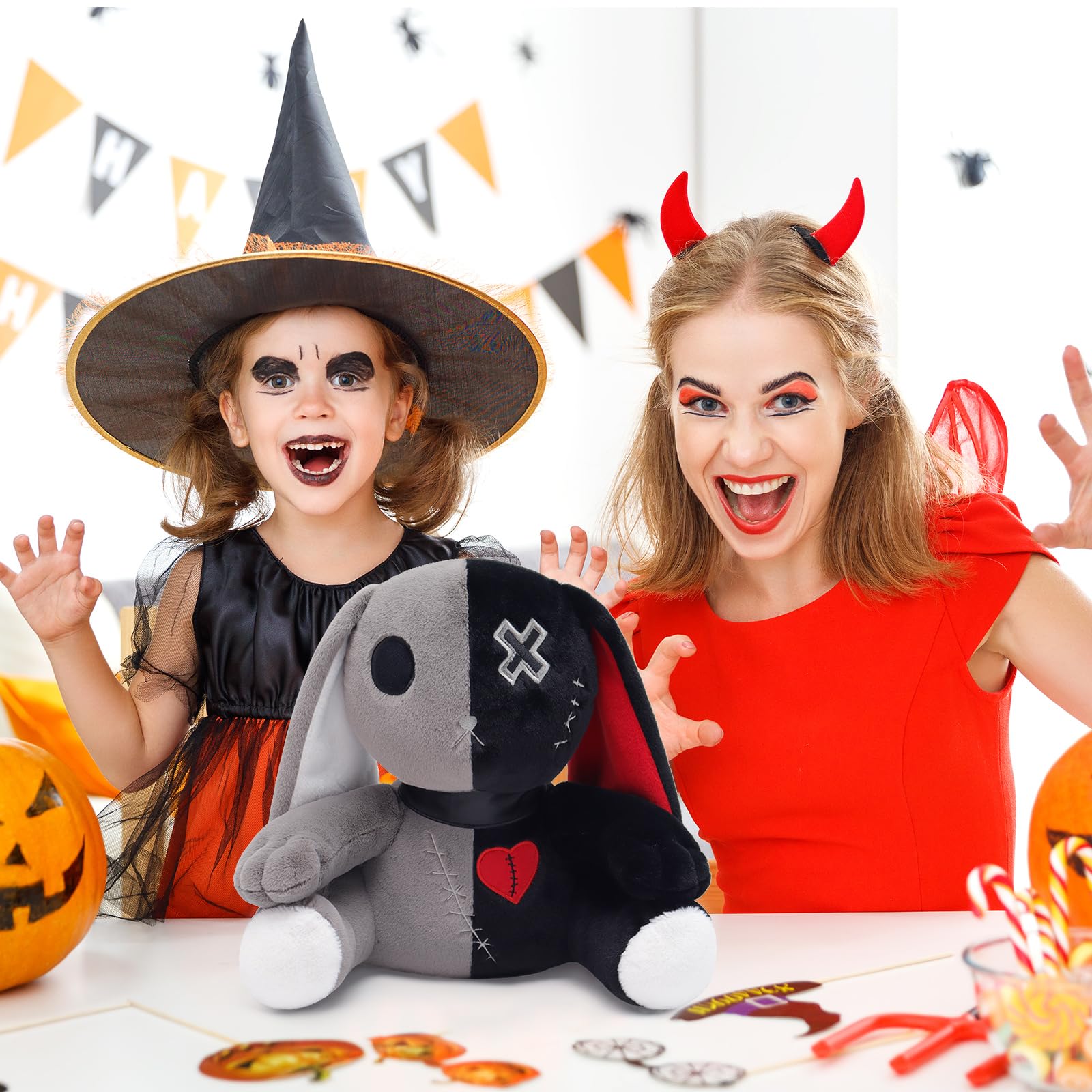 Qleewei Goth Bunny Plush Rabbit Stuffed Animal Horror Plushies Easter Creepy Spooky Bunny Stuffed Animal Crazy Rabbit Plushie To