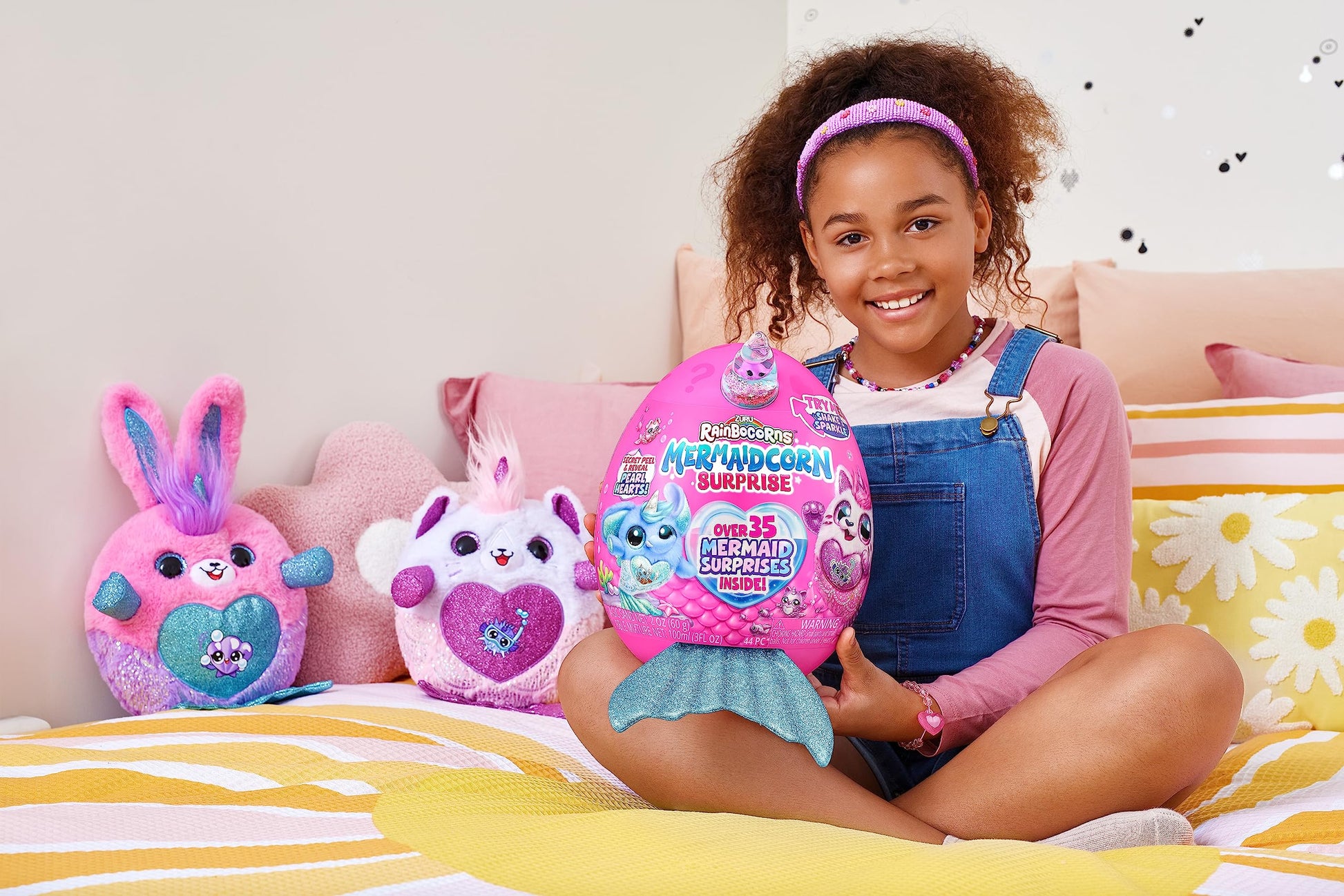 Introducing the Rainbocorns Mermaidcorns, a delightful and interactive plush toy that brings joy to children in Rainboville. These enchanting creatures are designed for imaginative play, offering a fun way to explore and collect over 35 surprises within each magic egg. Perfect for kids who love surprises and cuddly toys, Mermaidcorns are ideal companions for imaginative adventures.