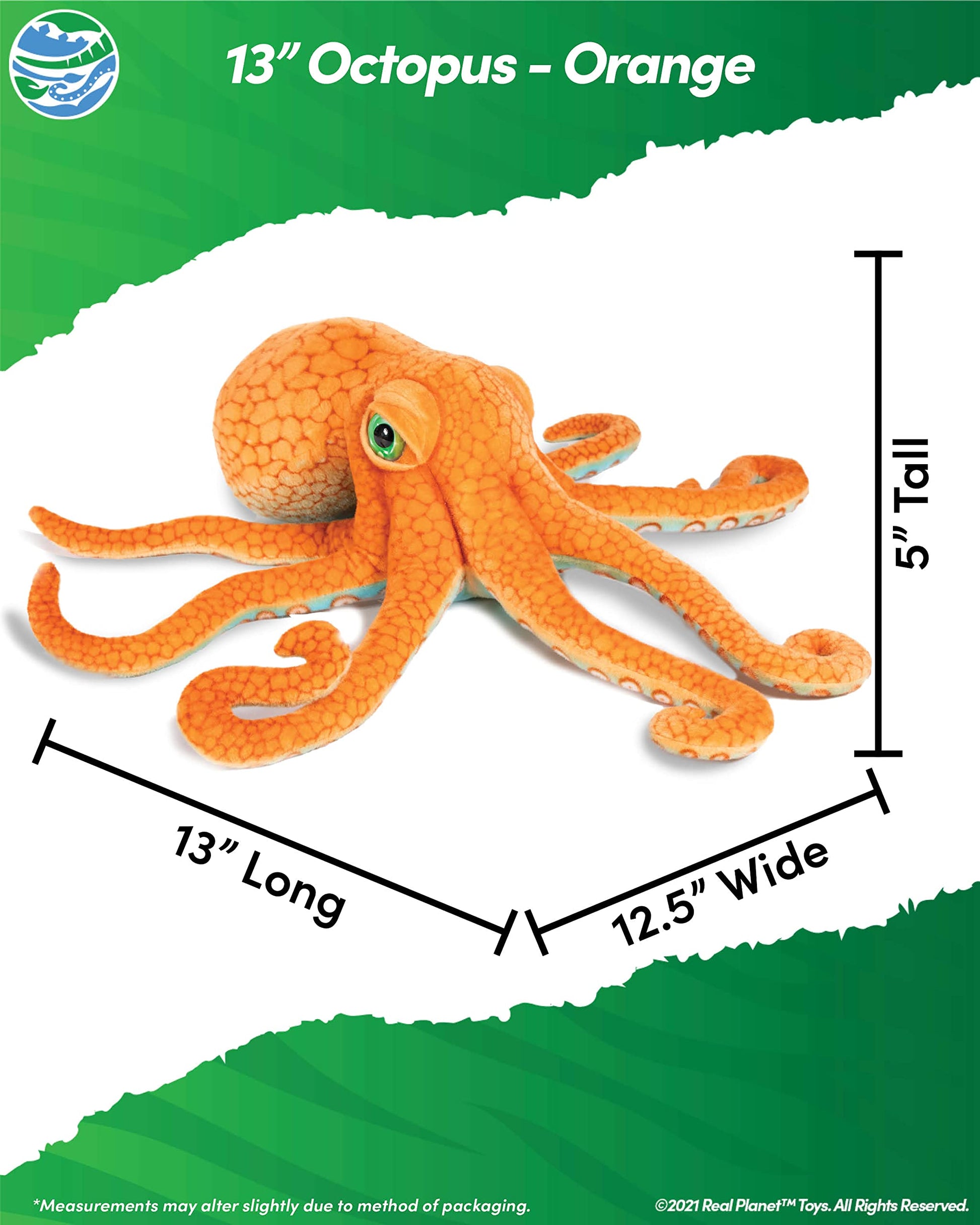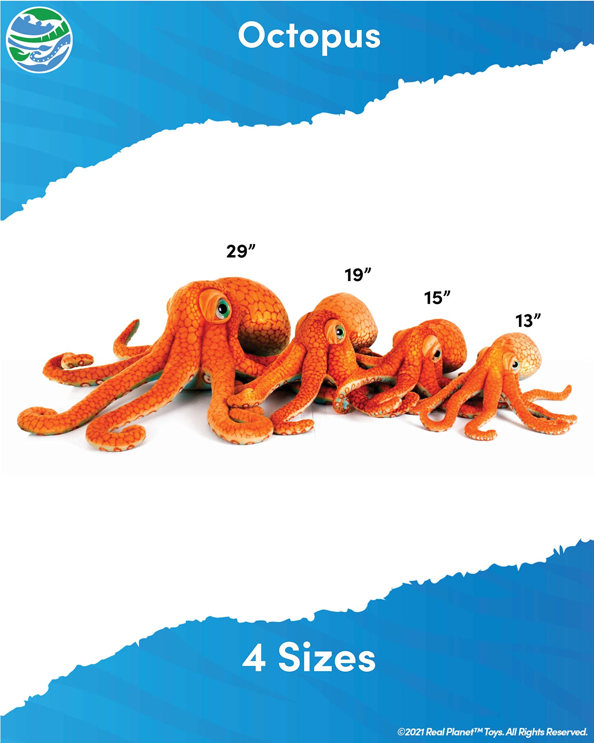 Real Planet Sea Life Plush - Realistic Stuffed Animal Gift For Kids All Ages, Ocean Marine Creature Plushie, Christmas Birthday Gifts (Brown Octopus, 13') (13' Long)
