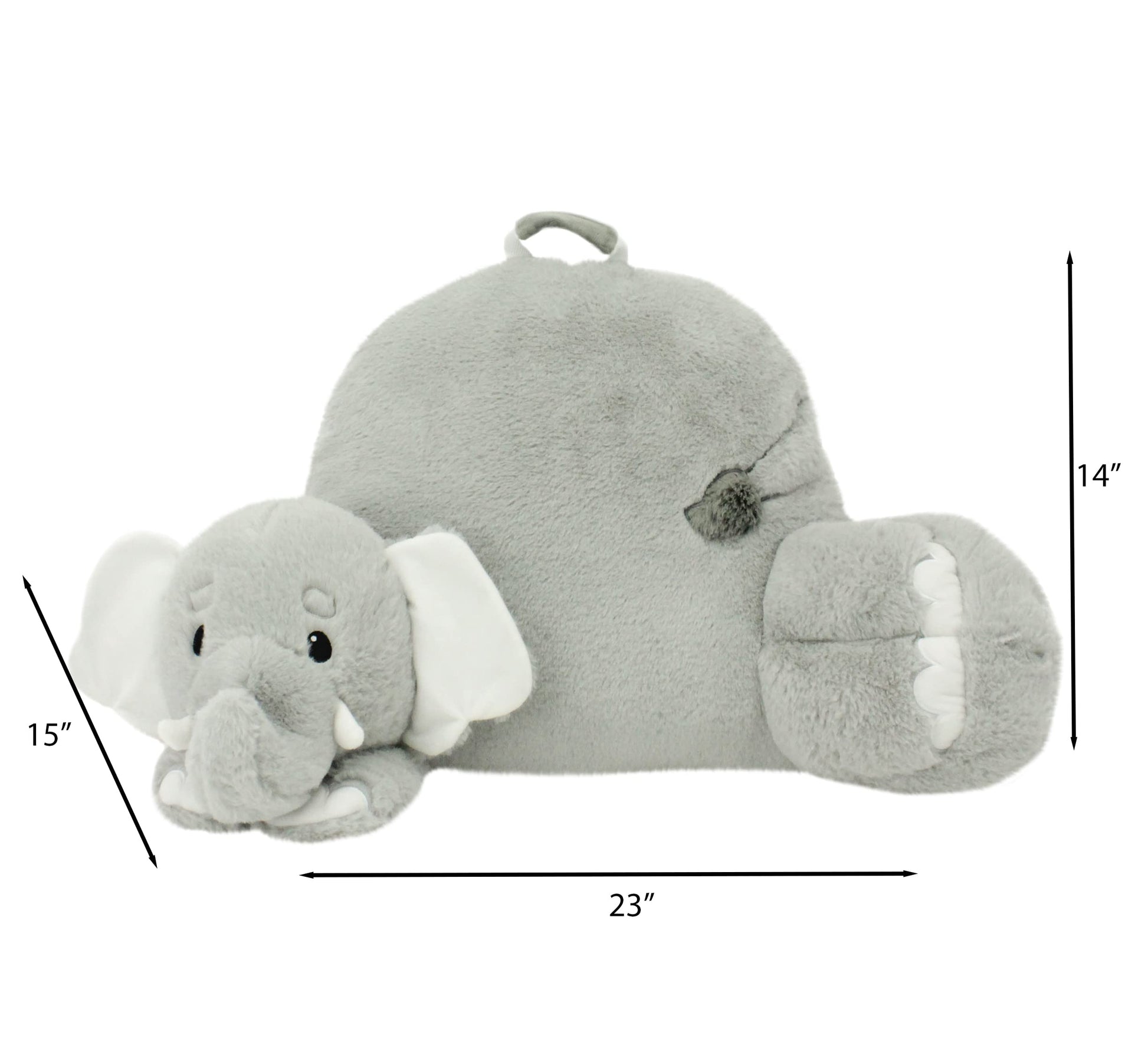 Soft Landing | Nesting Nooks | Soft And Cuddly Portable Back Rest And Reading Pillow With Storage Pocket - Elephant , Grey 15 X 23 X 14 Inches