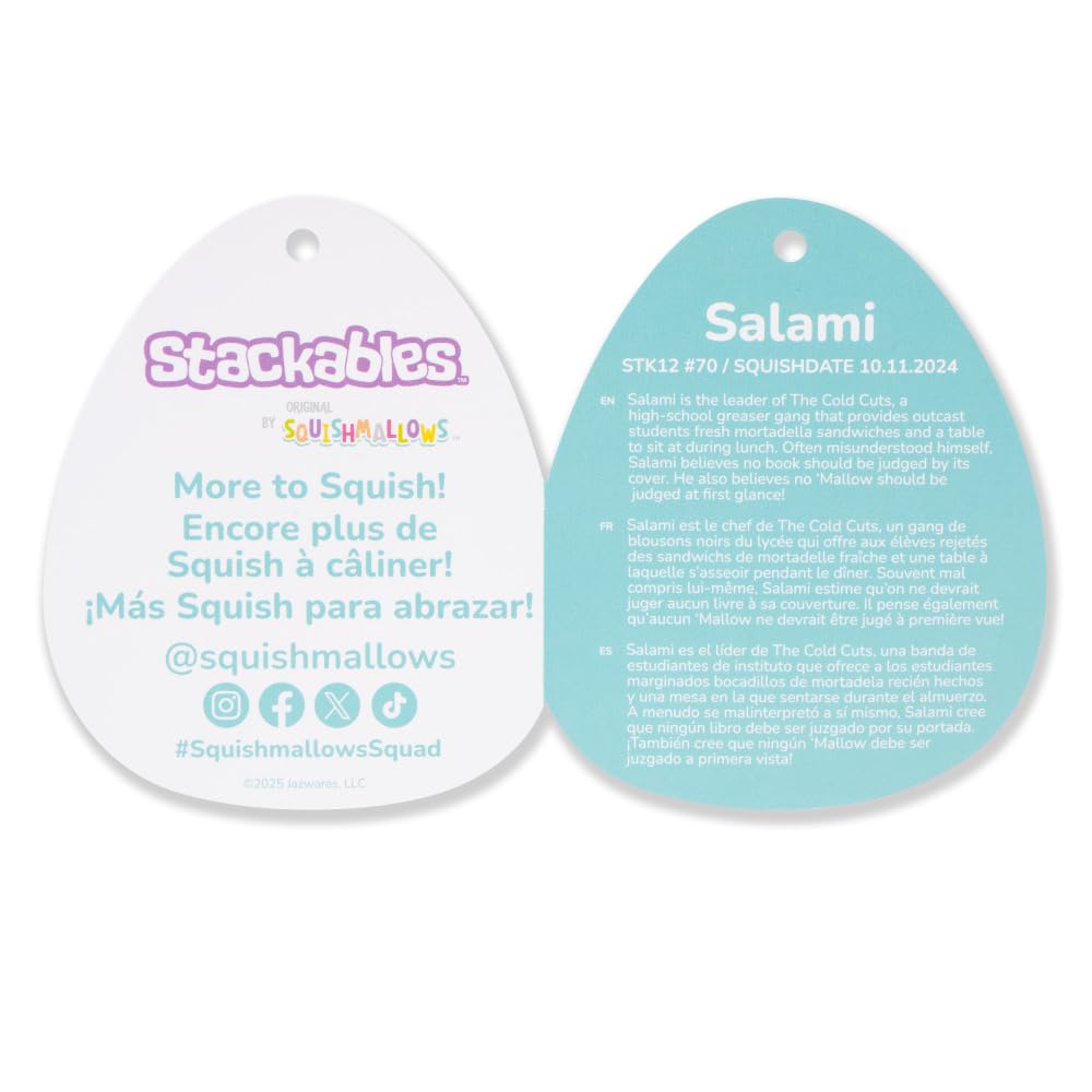 Meet your new bestie, Salami! Each Squishmallow plush comes with its own unique name and bio and makes the perfect cuddly companion for long flights out or comfy nights in. Salami is only by Original Squishmallows. Join the Squad today!