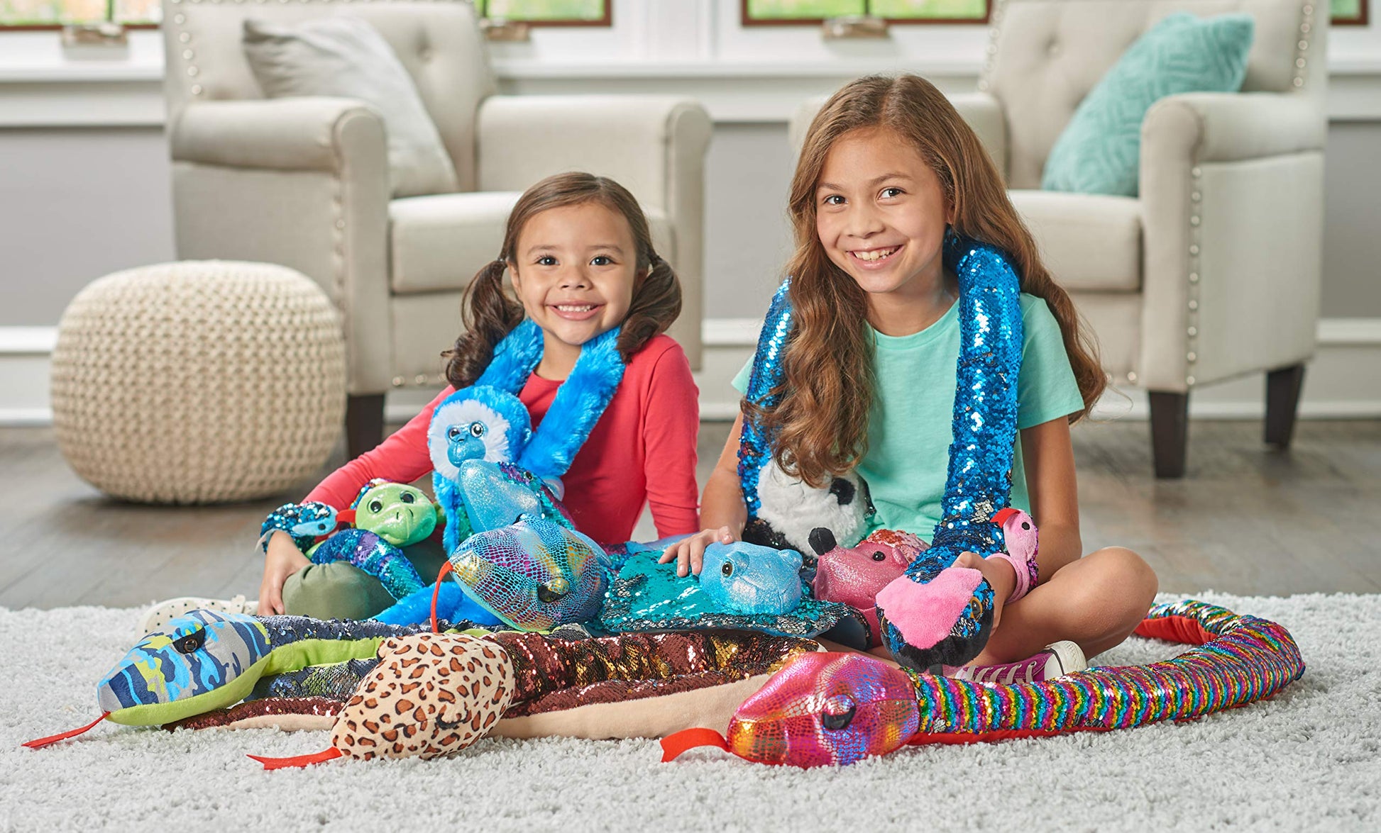 While most monkeys prefer to live in trees, so they can swing around, between trees with ease. Some live on the ground and are called baboons, on the ground at night and in the afternoons. This stuffed toy can live anywhere you like, he can live in your room or live on your bike. This animal plush has sequins that are extra fun, this plushier will be the envy of everyone. Cute plushies can come in all shapes and sizes, can be used as Christmas gifts or used as prizes. This blue plush toy with sequins is just the same, call him a monkey or kids toy or give him a name. Stuffed animals and kids toys can sometimes be boring, instead of playing your child can at times Be found snoring. But these zoo animal plushies are anything but, with their sequins, your child wont be in a plush toys rut. Monkeys are known for being highly intelligent animals and also very clever. Being smart and clever are great qualities to instill in your child so feel free to use these realistic stuffed animals in an educational lesson for children. When monkeys gather food there is always a leader while the others stand guard. This makes for another GREAT way to use these plush animals in a lesson while teaching the values of teamwork. These stuffed toys also make for great general gifts for kids or great birthday gifts for kids. Wild Republic has been developing animal plush and educational toys for kids of all ages since 1979, With a unique speciation in lifelike stuffed animals.