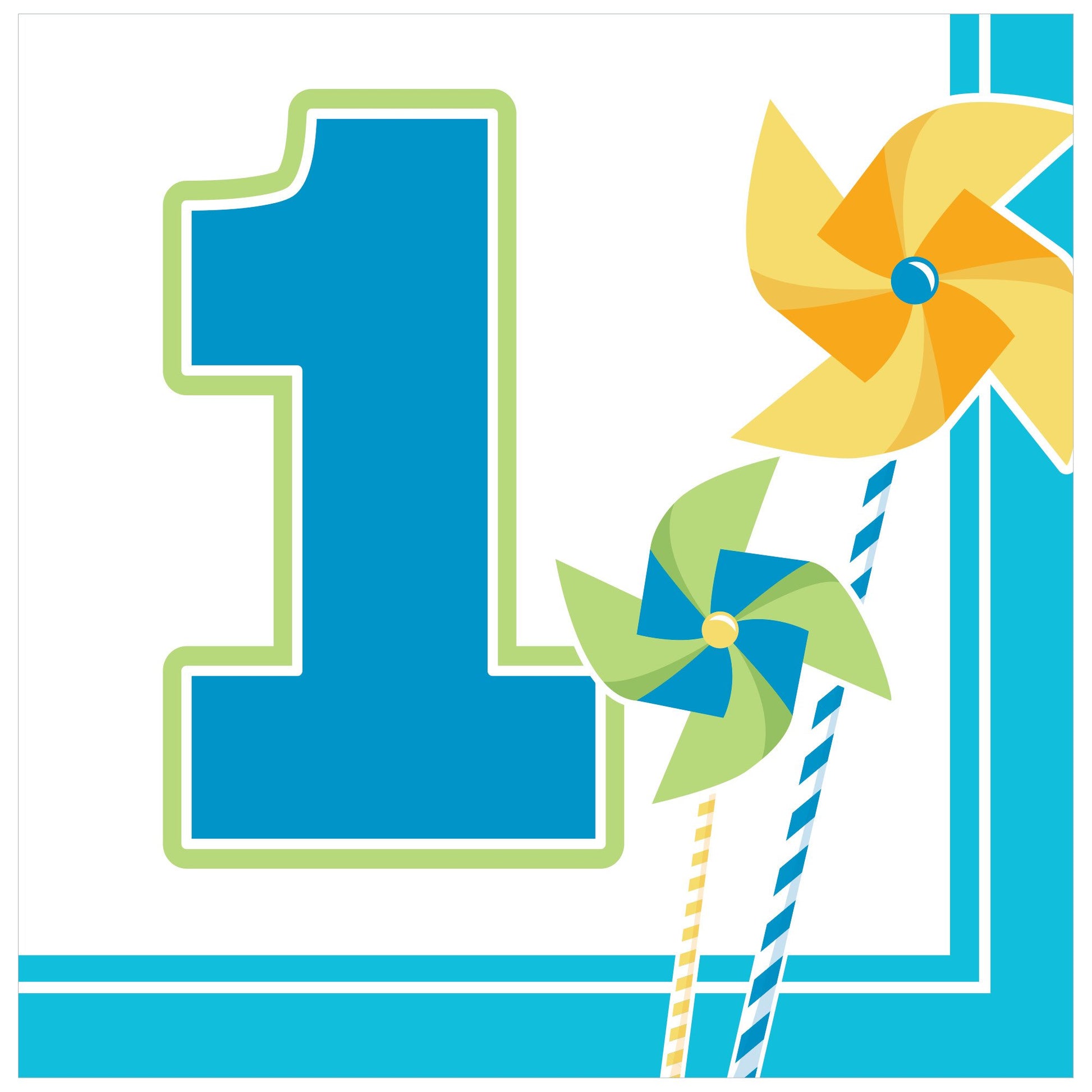 - Q: What colors are featured on the napkins? A: The napkins feature colorful pinwheels in green and yellow on a white background, with blue accents.
