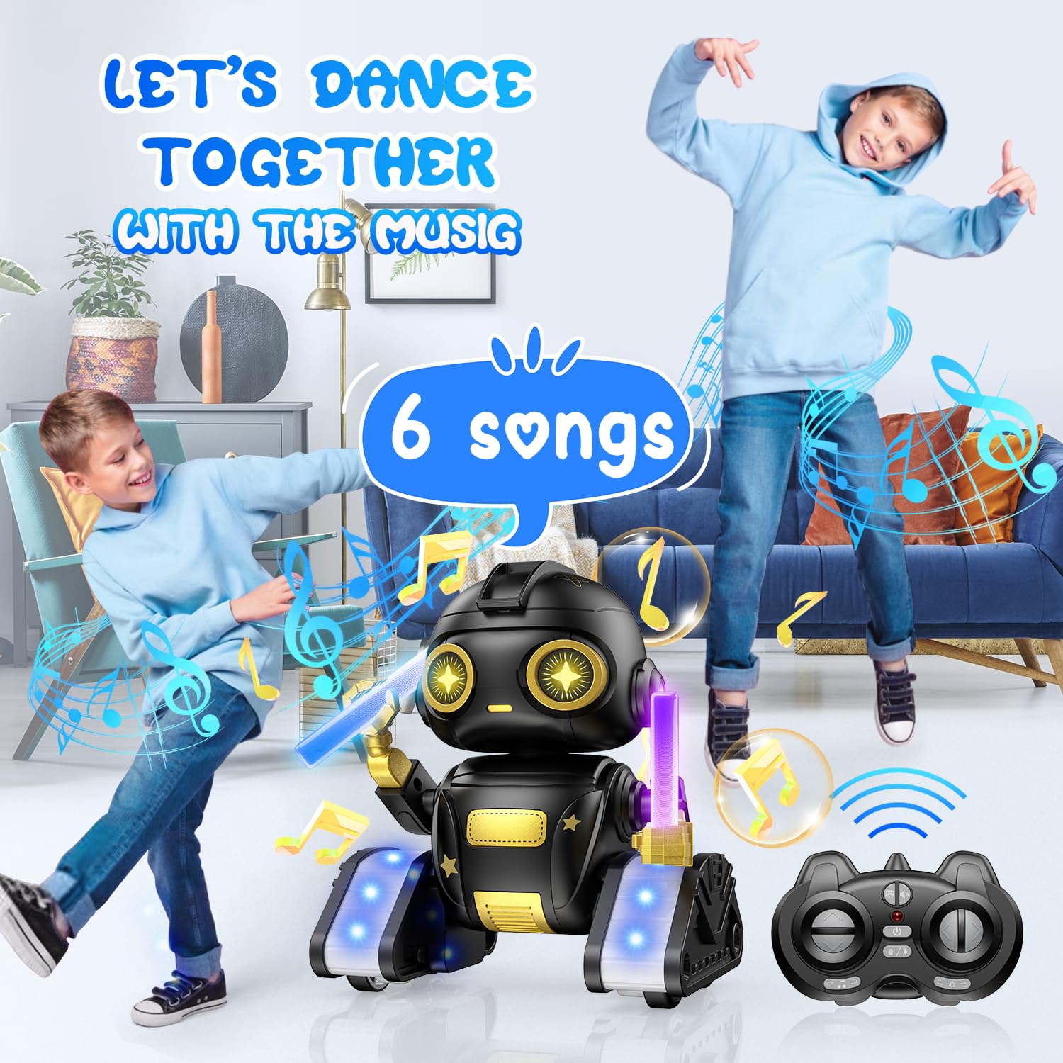 Baiwu Robot Toys For Kids,Rc Robot With Gesture Sensing & Led Eyes,Star Projector And Music,Boys & Girls Toys For 6+ Age(Black)