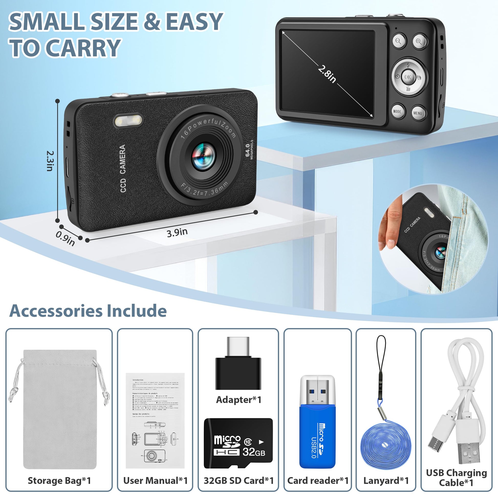 - Q: Can the Kids Camera store a lot of photos? A: Yes, the Kids Camera comes with a 32GB SD card that can store over 2,000 photos and supports up to a 128GB SD card for even more storage, making it great for kids who love to take pictures.