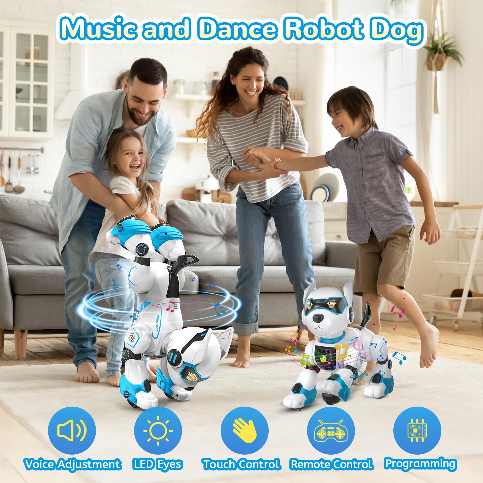 Multifunctional Smart Remote Control: This Smart Robot Dog Can Be Controlled Via Remote Or Voice Commands, Providing Kids With An Interactive Experience. It Performs Actions Like Moving Forward, Turning Left/Right, Moving Backward, Sitting Down, Doing Handstands, Yoga, And Push-Ups. The One-Click Auto Demo Showcases Complex Moves, Enhancing Playtime Fun. Special Stunt Dance Features, With Built-In Music And Dance Moves, Encourage Kids To Dance Along, Feeling The Rhythm And Joy Of The Music | Rich Imitation Functions: A Standout Feature Of This Robot Dog Is Its Ability To Mimic The Sounds And Actions Of Ten Different Animals, Including An Elephant, Cat, Duck, Pig, Gorilla, Tiger, Sheep, Cow, Horse, And Chicken. Each Trigger Plays A Clip Containing The Animal'S Name, Sound, And The Dog’S Imitation, Allowing Kids To Learn About And Recognize Various Animals While Playing. This Design Not Only Enhances The Toy’S Fun Factor But Also Sparks Children’S Curiosity And Interest In Learning | Touch Sensory And Programming Functions: Touching The Chin Of The Interactive Robot Dog Activates Its Sensor, Prompting Actions Like Moving Forward, Backward, And Turning. Its Advanced Programmable Function Allows Kids To Use The Remote To Create Commands, Instructing The Dog To Perform Actions In Sequence. This Feature Nurtures Children'S Logical Thinking And Hands-On Abilities, Providing The Joy And Satisfaction Of Programming | Interactive And Learning: The Toy Dog Includes A Story Feature That Delivers Five Captivating Stories Through Voice Playback, Helping Kids Gain Knowledge As They Listen. The Smart Robot Dog Can Also Perform Yoga, Push-Ups, Cute Acts, Express Anger, Tease, And Imitate, Providing A Rich Entertainment Experience For Children. While Interacting With Kids, This Toy Also Stimulates Their Creativity And Imagination, Making It A Robot Toy That Combines Both Entertainment And Educational Functions | Long Battery Life And Ideal Gift: The Smart Robot Puppy Is Equipped With A Rechargeable Battery That Requires 1-2 Hours To Fully Charge, Providing 80 Minutes Of Continuous Use, And Ensuring Kids Can Enjoy Uninterrupted Fun. As A Gift For Christmas Or Birthdays, This Intelligent Toy Is Suitable For Kids Of Various Ages, Accompanying Them Through Joyful Play Times. Whether Indoors Or Outdoors, This Toy Brings Happiness To Children, Becoming Their Favorite Entertainment And Learning Companion
