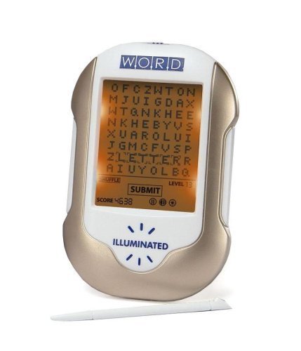 Now you can play versions of your favorite classic and online word games right in the palm of your hand! The new electronic Illuminated W.O.R.D. includes four of your favorite word games in a portable handheld design that you can take with you anywhere. W.O.R.D. is perfect for both casual gamers and word aficionados looking for a quick, fun break! Featuring an illuminated screen with touch screen technology, beginner and advanced modes, adjustable volume and screen contrast, music and sound effects. Batteries included!
