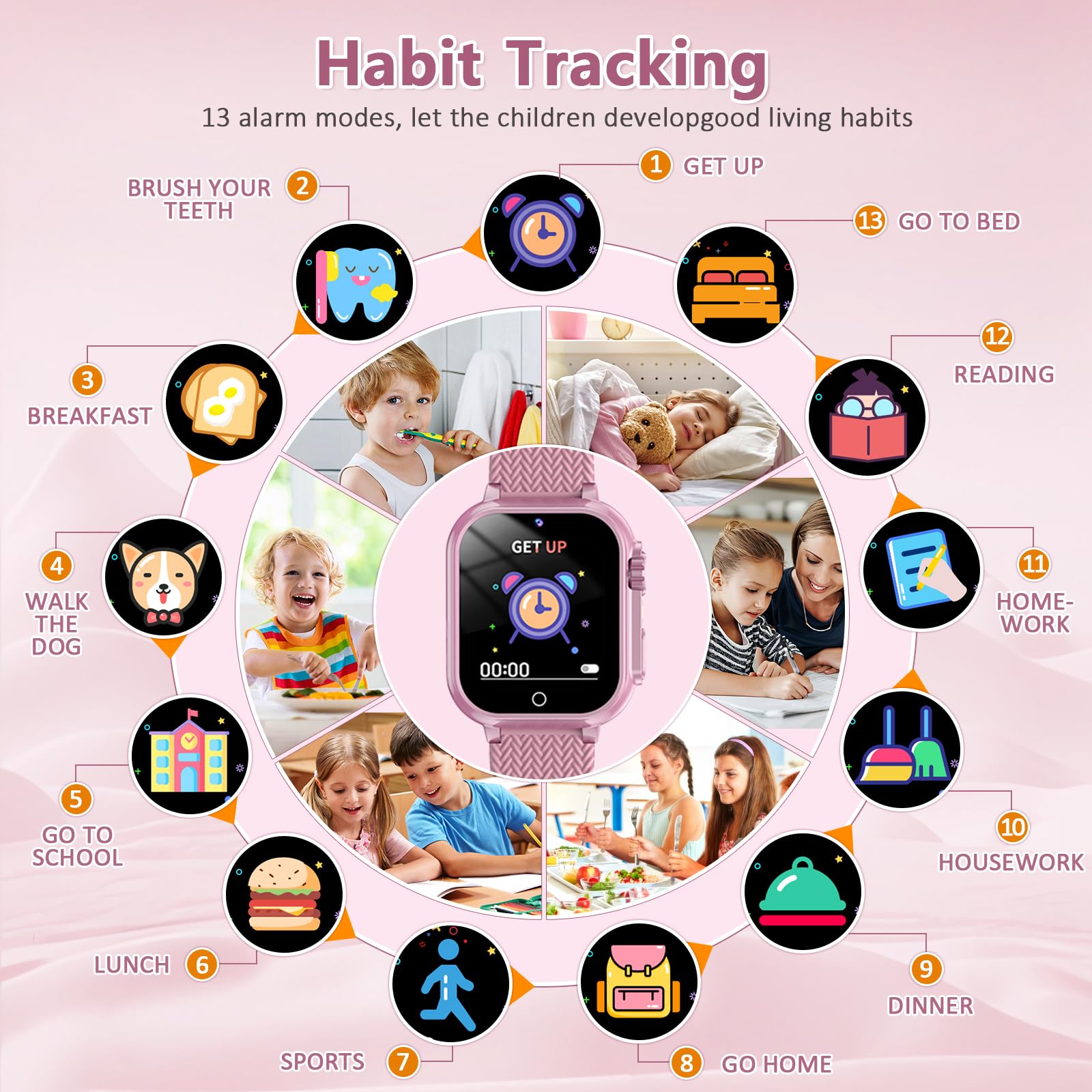 Kids Watch With Selfie-Cam, 32 Games, Mp3 Player, Audiobooks, Voice Recorder, Pedometer, Flashlight, Alarm, Habit Tracking, Stopwatch, 100 Learn Card, Calculator, Theme, Screensaver Select, Parental Control, Silent Profile, Time Format, Volume, Etc. They Can Help Kids Stay Organized, Track Their Activities, Make Learning Fun With Educational Games And Apps.Girls Toys Age 6-8, 8 Year Old Girl Gifts, Girls Toys 8-10