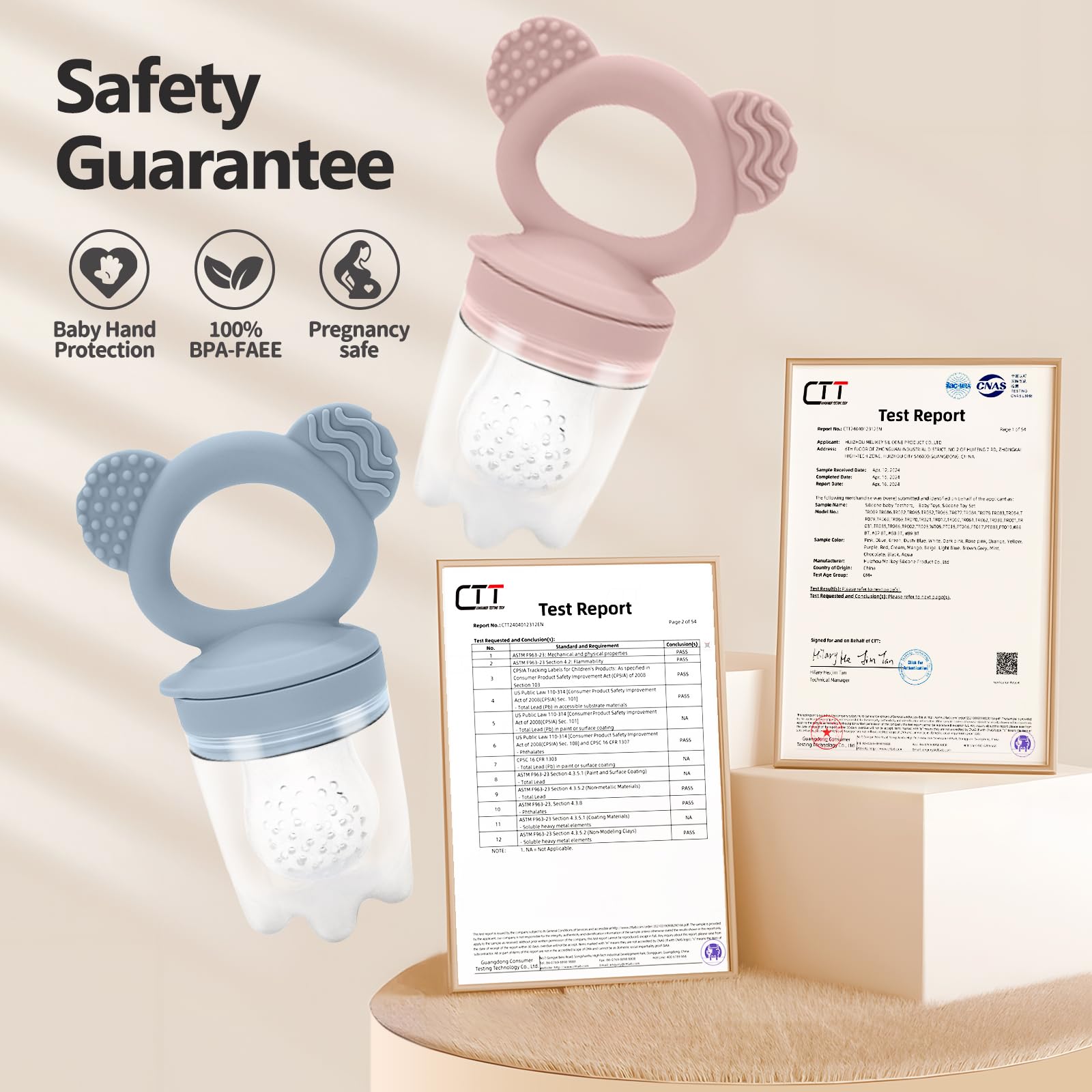 Baby Fruit Food Feeder, Baby Popsicle Molds, Breastmilk Freezer Tray, BPA Free Silicone Teething Toys for 6 Month+ Baby Infant Self Feeding (Blue+Pink)