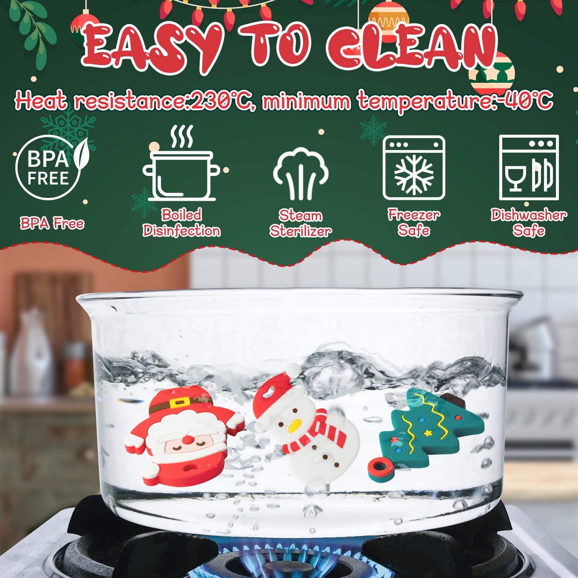 3Pcs Christmas Silicone Teething Toys for Babies for Baby Boy and Girl BPA free silicone, safe and non-toxic, suitable for babies over 6 months old. Material Silicone Product Size Snowman Teether Size: 3.1 x 2.1 inch Santa Claus Teether Size: 3.1 x 2.9 inch Christmas Tree Teether Size: 3.2 x 2.2 inch Package List Snowman Teether x1 Santa Claus Teether x1 Christmas Tree Teether x1 Manual measurement, please allow slight errors on size.