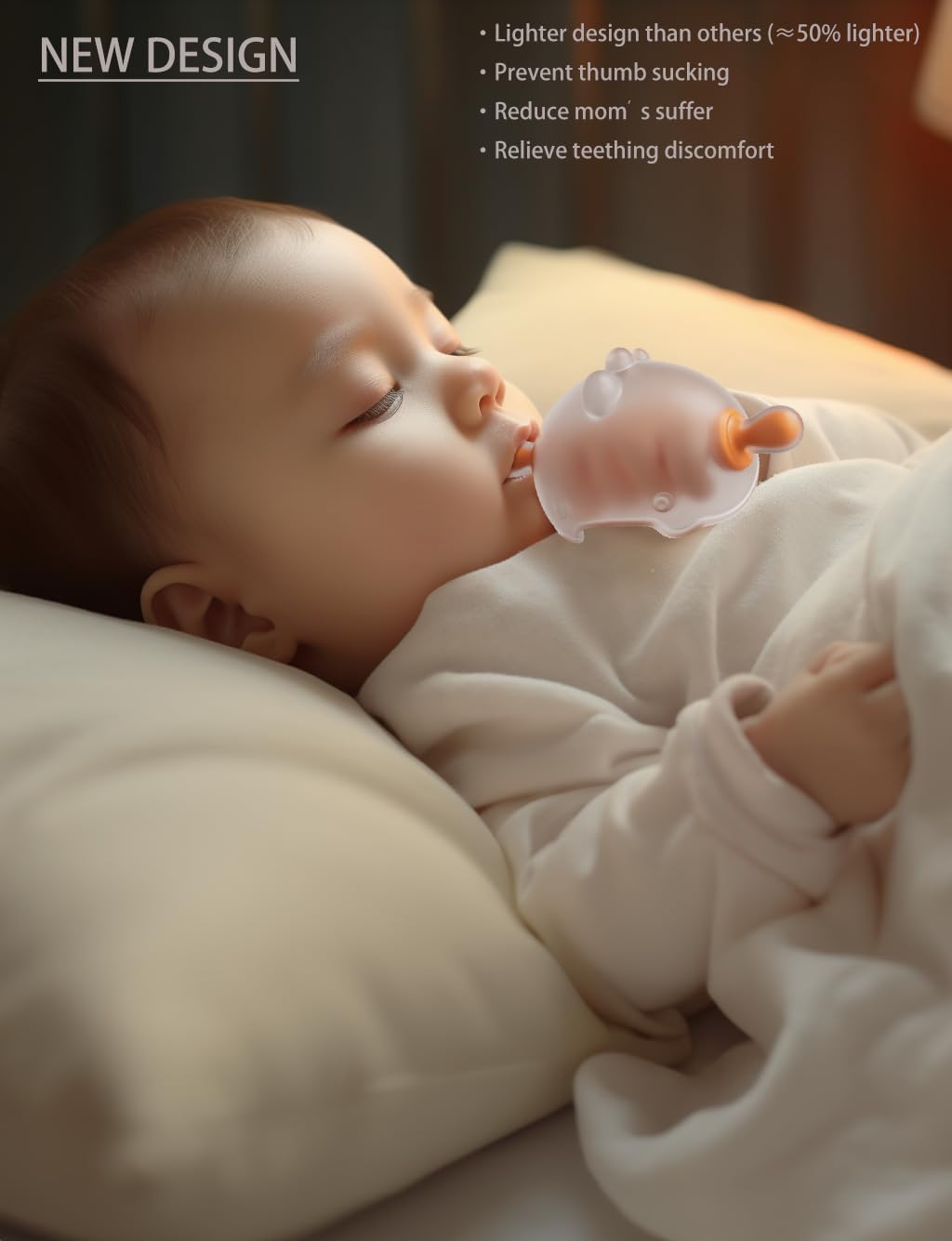 A new design of baby soothing teether, food-grade silicone, BPA free, softer and closer to the touch of the nipple, no glue bonding, one-piece molding, 180 hand protection, never dropping, better avoid collect lint than others, prevent the baby from sucking thumb, relieve gum pain and itching, relieve irritability, and reduce the mother's suffering, best teethers of baby toys.
