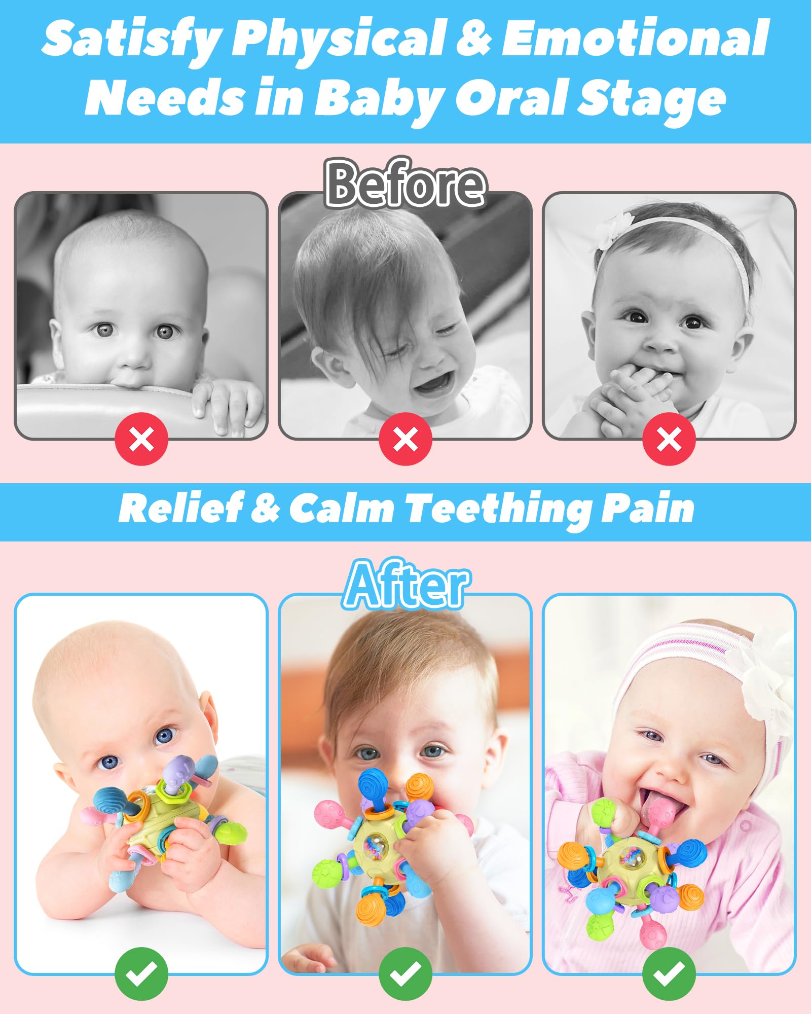 Baby Toys for 0-6 6-12 Months Ages 0-2, Tummy Time Montessori Toys for Babies 0 3 6 9 12 18 Months, Newborn Infant Sensory Toys,
