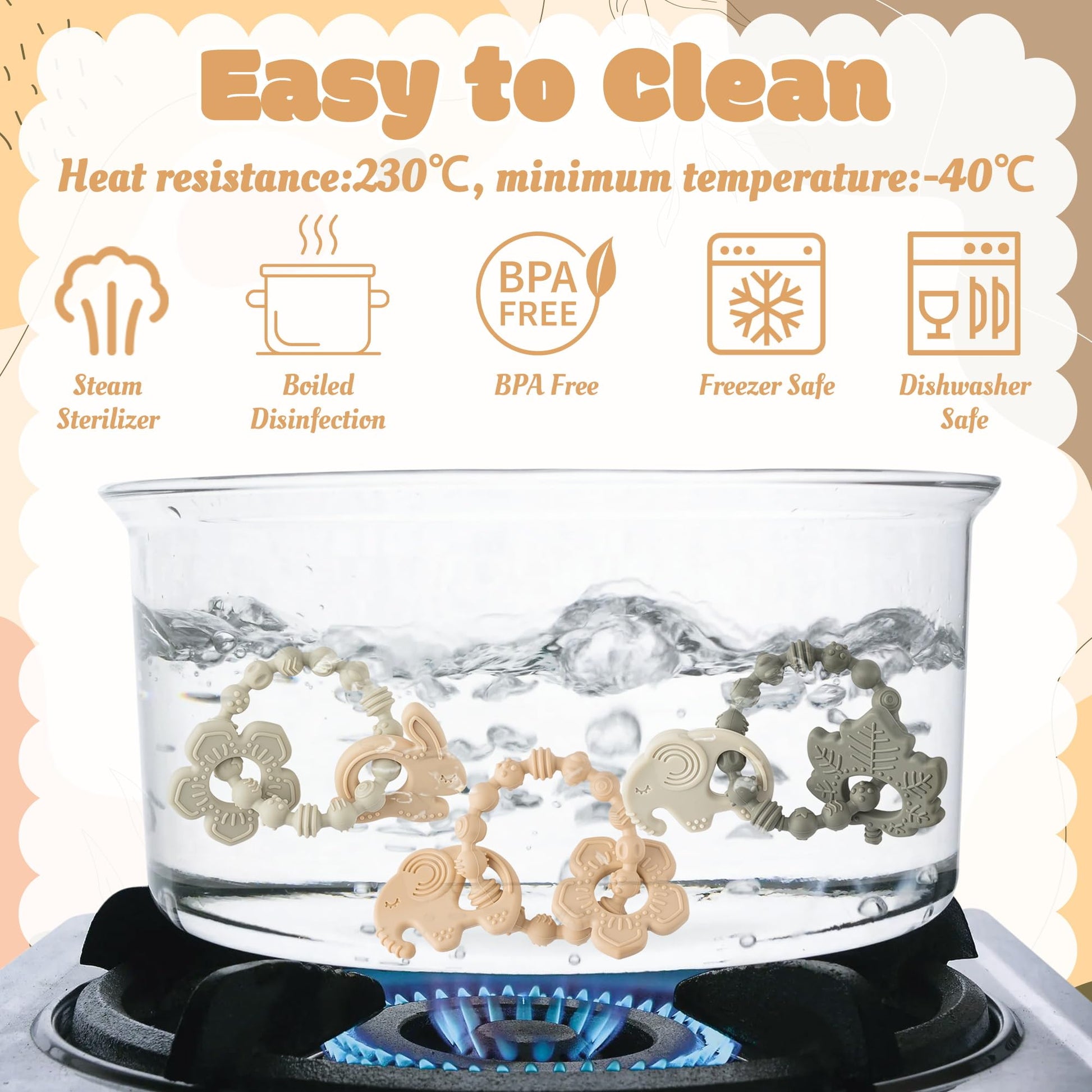 View compareSilicone Teether Toys for Babies - 2ooya 3Pcs Animals Themed Teething Ring, Flower Leaves Baby Sensory Chew Toys with Rattles fo