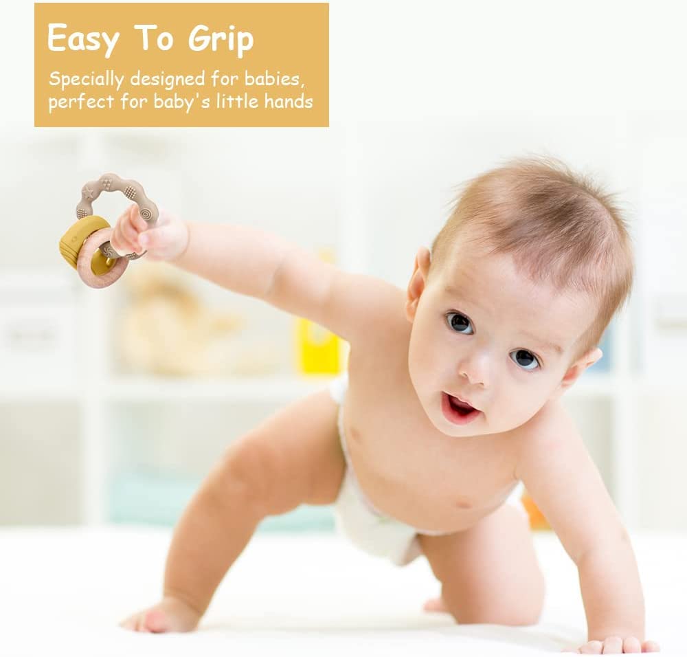 View compareVicloon Baby Teether Toys, Silicone & Natural Wood Teether Ring, Baby Teething Toys For Babies 0 Months+, Silicone Chewable Ring