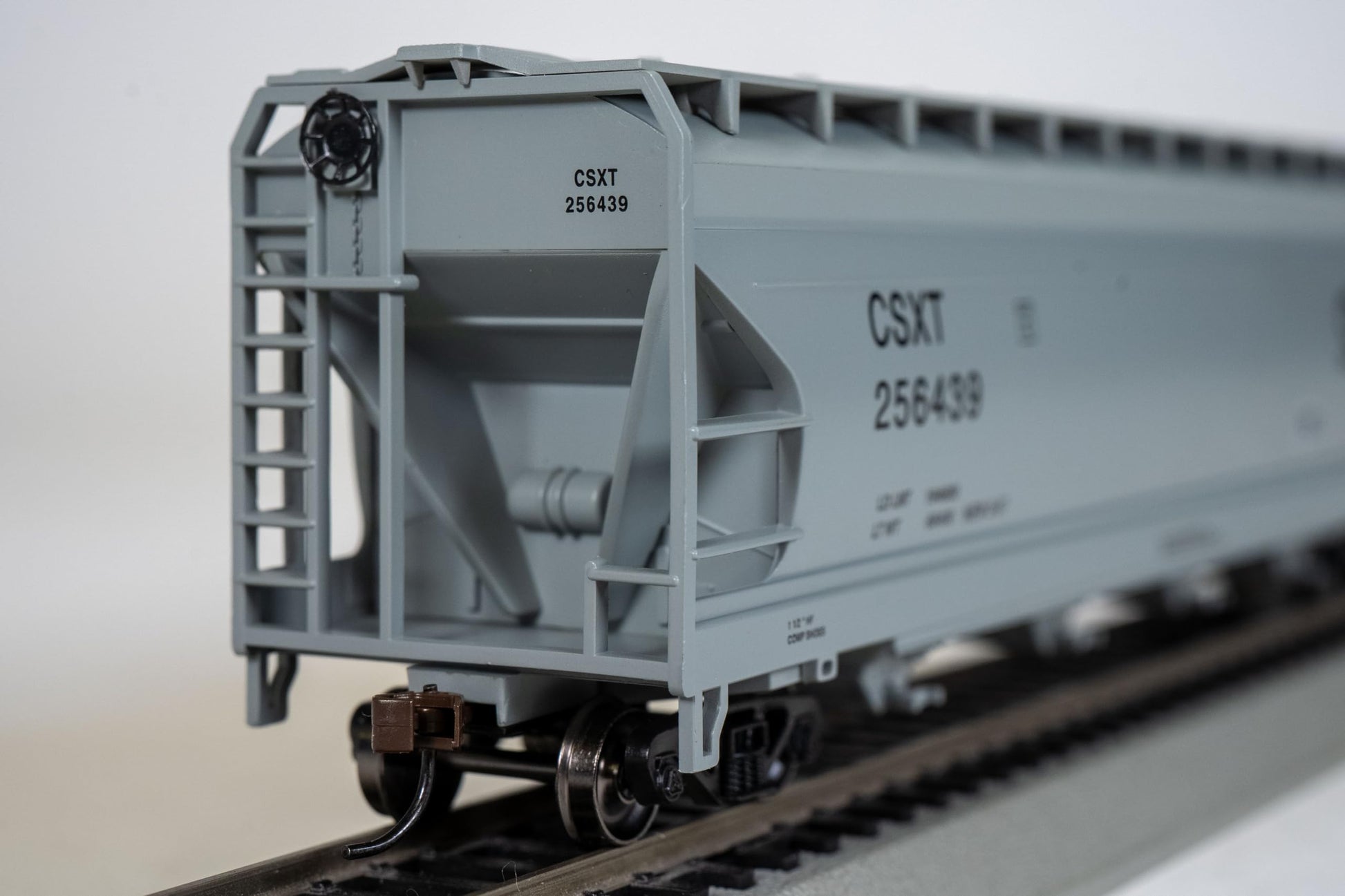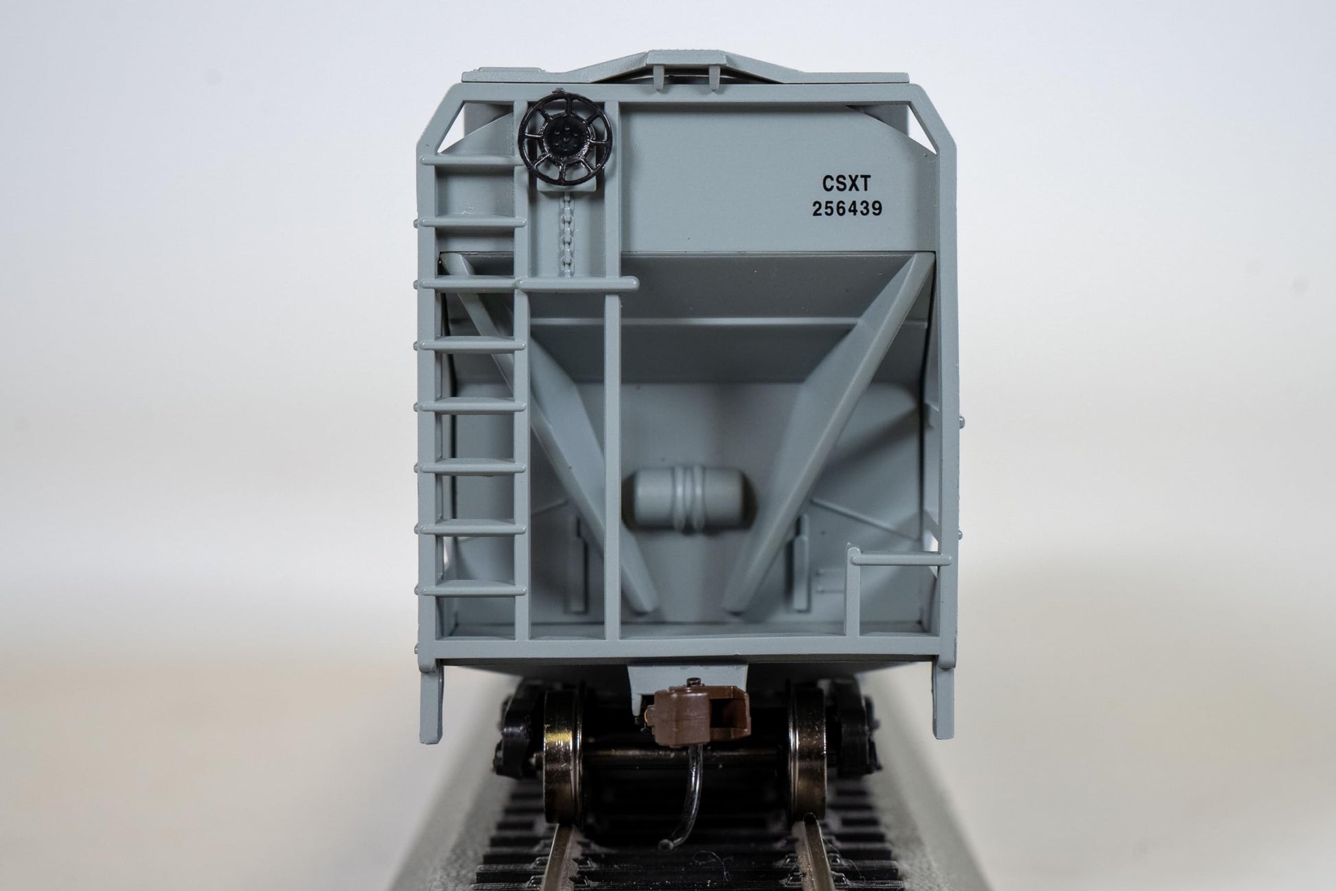 56' ACF Center-Flow Hopper - CSX #256439 - HO Scale. Silver Series rolling stock features; blackened metal wheels, body mounted couplers, non-magnetic axles.