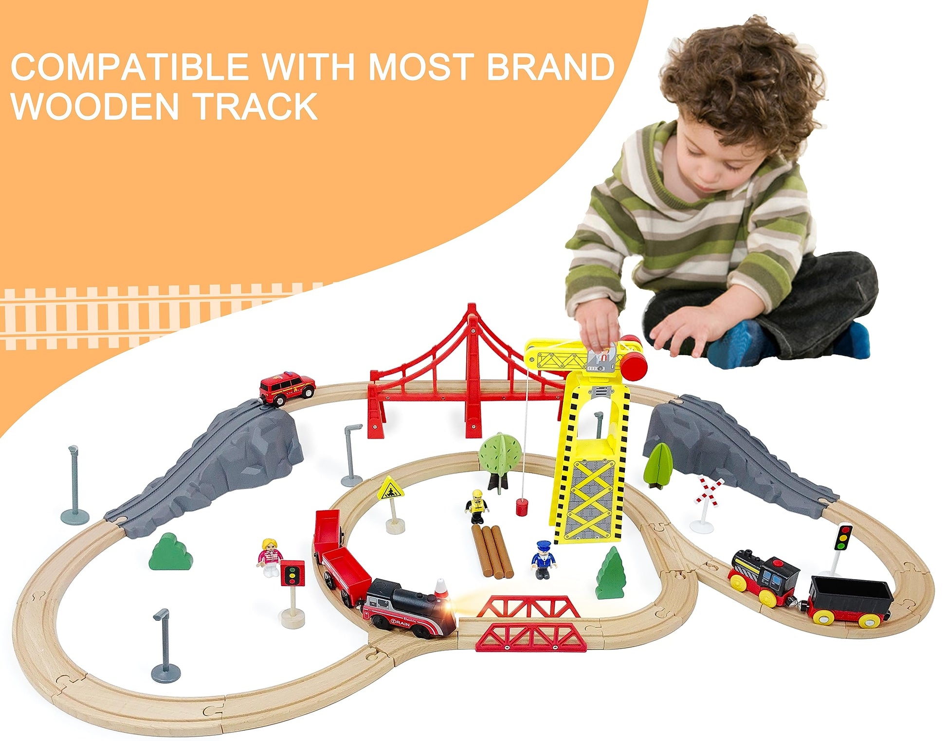 Classic Railway Train Set Is One Of The Necessary Wooden Toys For Childhood. Toddlers Love Building, Telling Stories And Pretend Play, Adding Train Toys Especially Battery Operated Trains For Railway System To Make Up Lack Parts Of New Track Layouts, Kids Can Build, Tinker And Play Without Frustration, Experience A Sense Of Achievement From Imaginative Play.