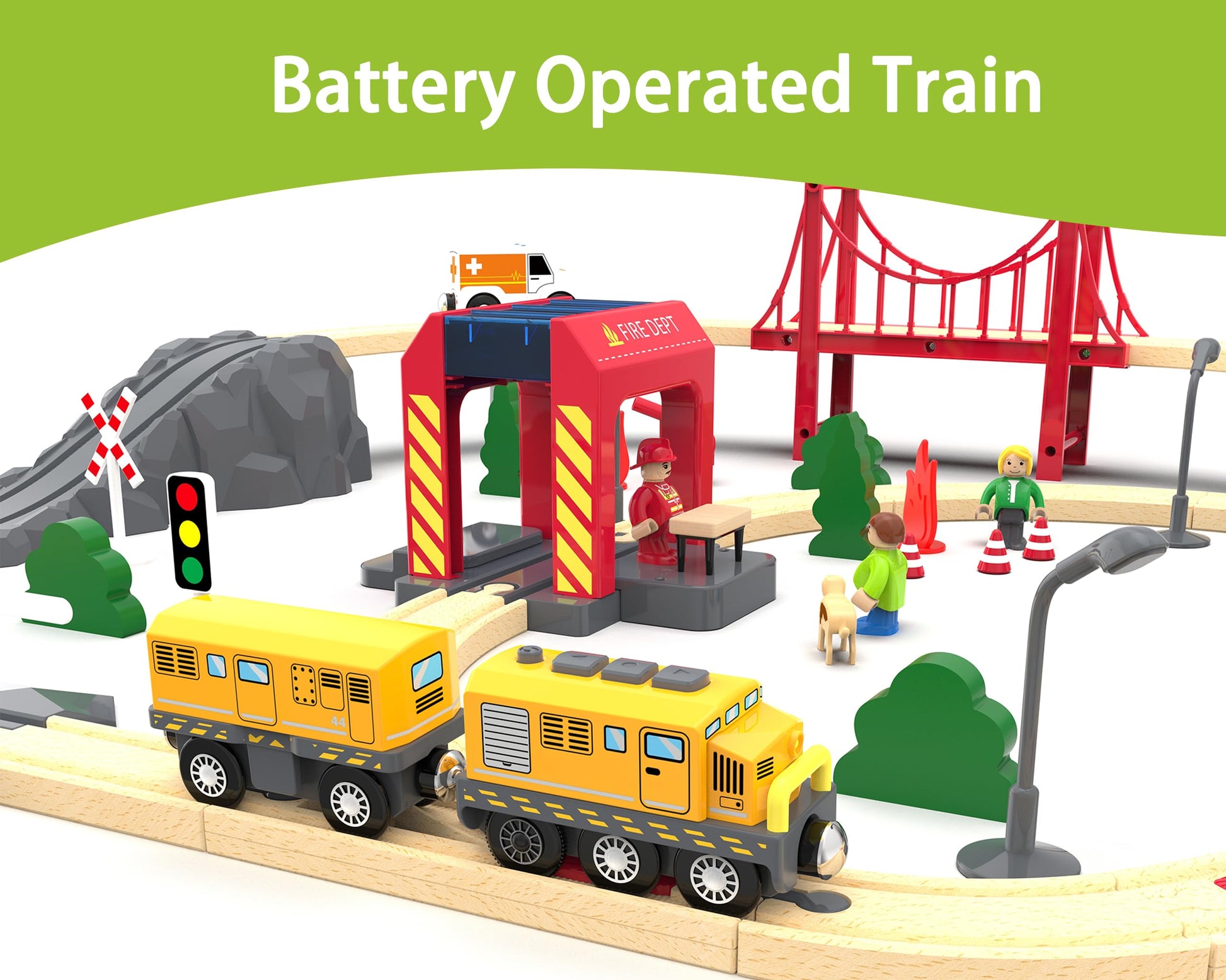 • Q: Is the battery-operated train compatible with other wooden train track systems? A: Yes, this battery-operated train is designed to work seamlessly with all major wooden train track systems, including Thomas & Friends, Brio, Chuggington, and Melissa & Doug.