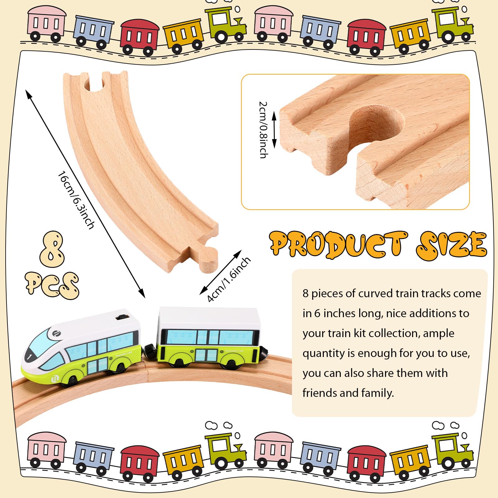 Liliful Pack of 8 Wood Train Track Expansion Packs| Compatible with Most Train Tracks| 6'' Train Tracks (Curved)