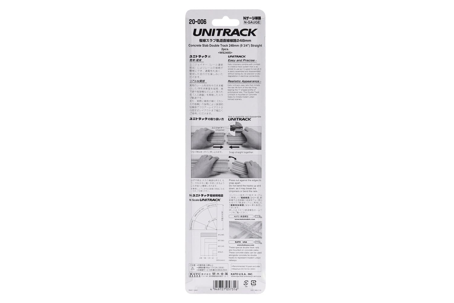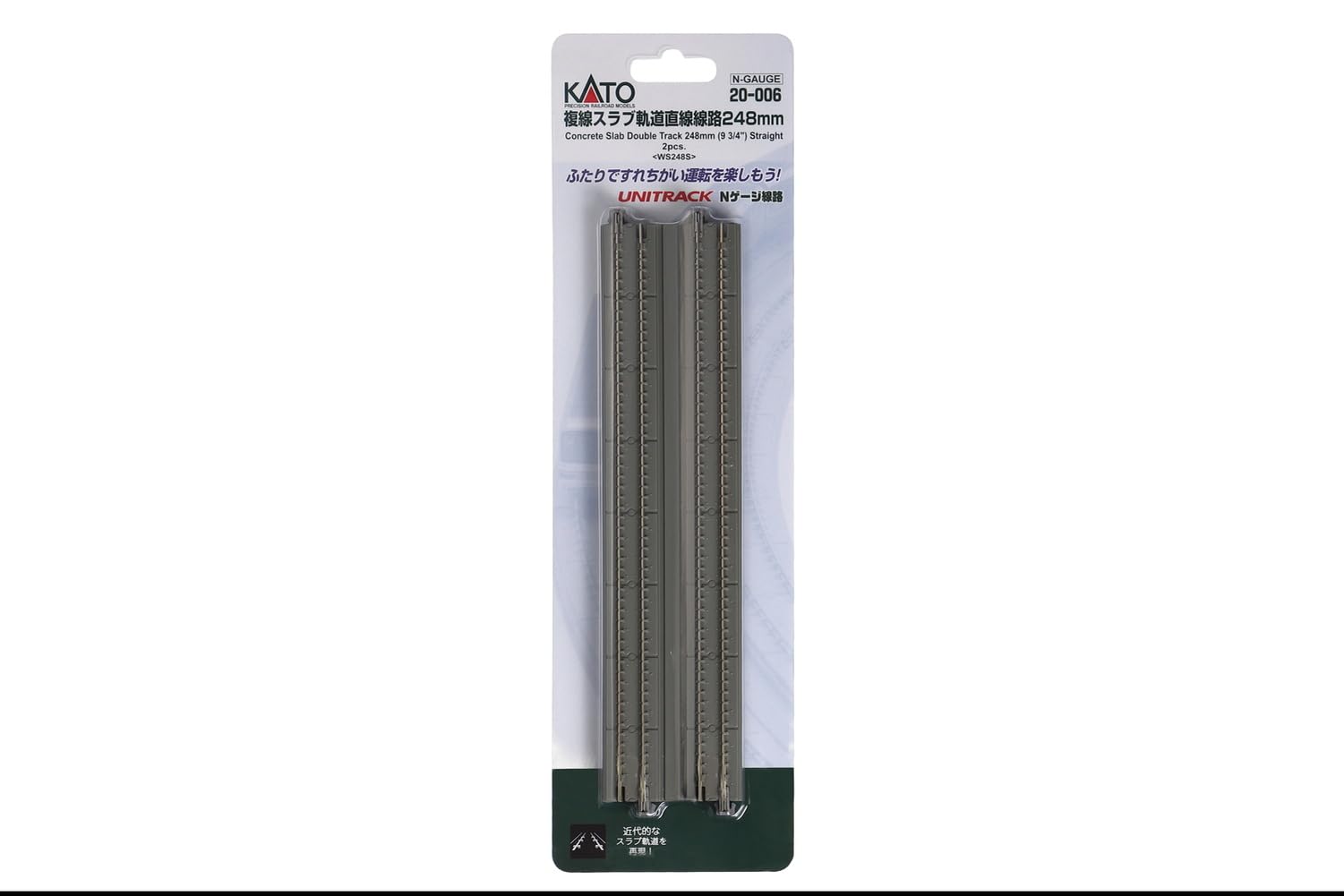 - Q: What is included in the Kato N 9-3/4" Double Track Straight set? A: The Kato N 9-3/4" Double Track Straight set includes two pieces of high-quality straight track designed for seamless integration into your model train layout.
