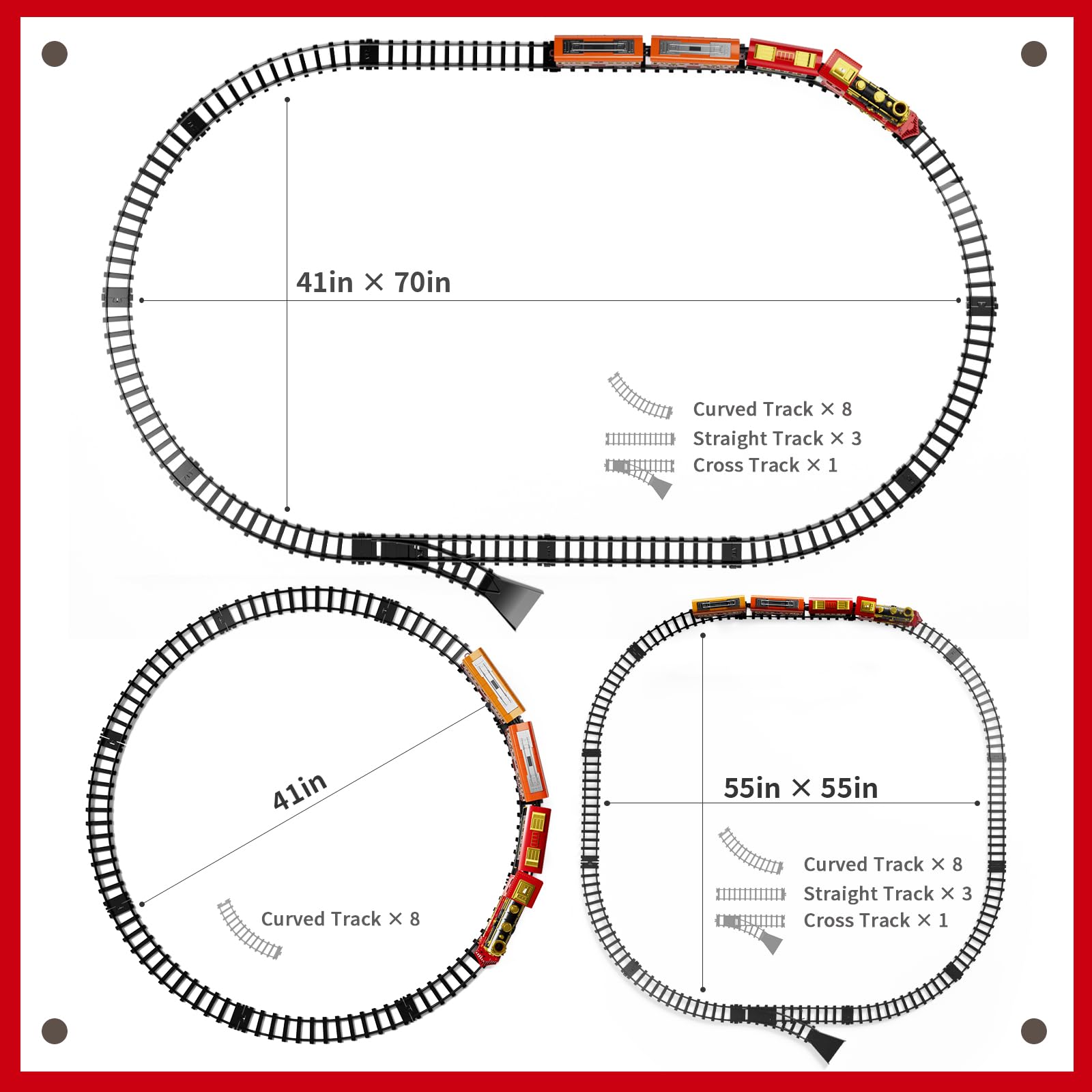 - Q: How many track layouts can be created with this train set? A: The PUPU PIG Train Set includes multiple track pieces that allow for the creation of three suggested layouts: Oval (70'' x 41''), Round square (55'' x 55''), and Round (41'' x 41''), as well as the option for kids to design their own unique layouts.
