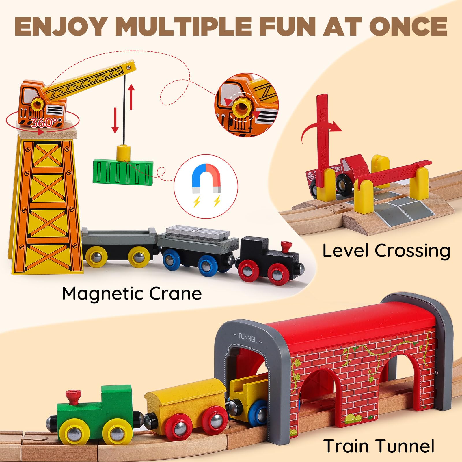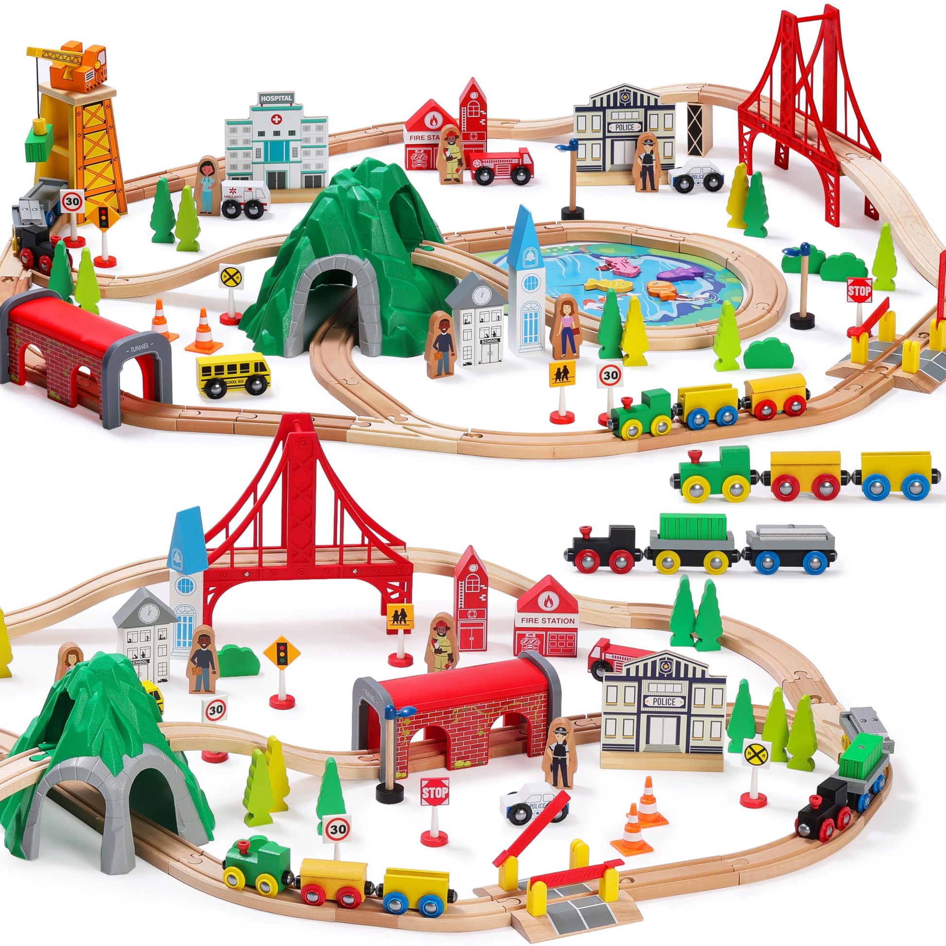 View compareSainsmart Jr. 112-Piece Wooden Train Set For Toddler – Double-Sided Train Tracks, Compatible With Brio, Thomas, Melissa & Doug – Perfect Wood Toy For Boys And Girls