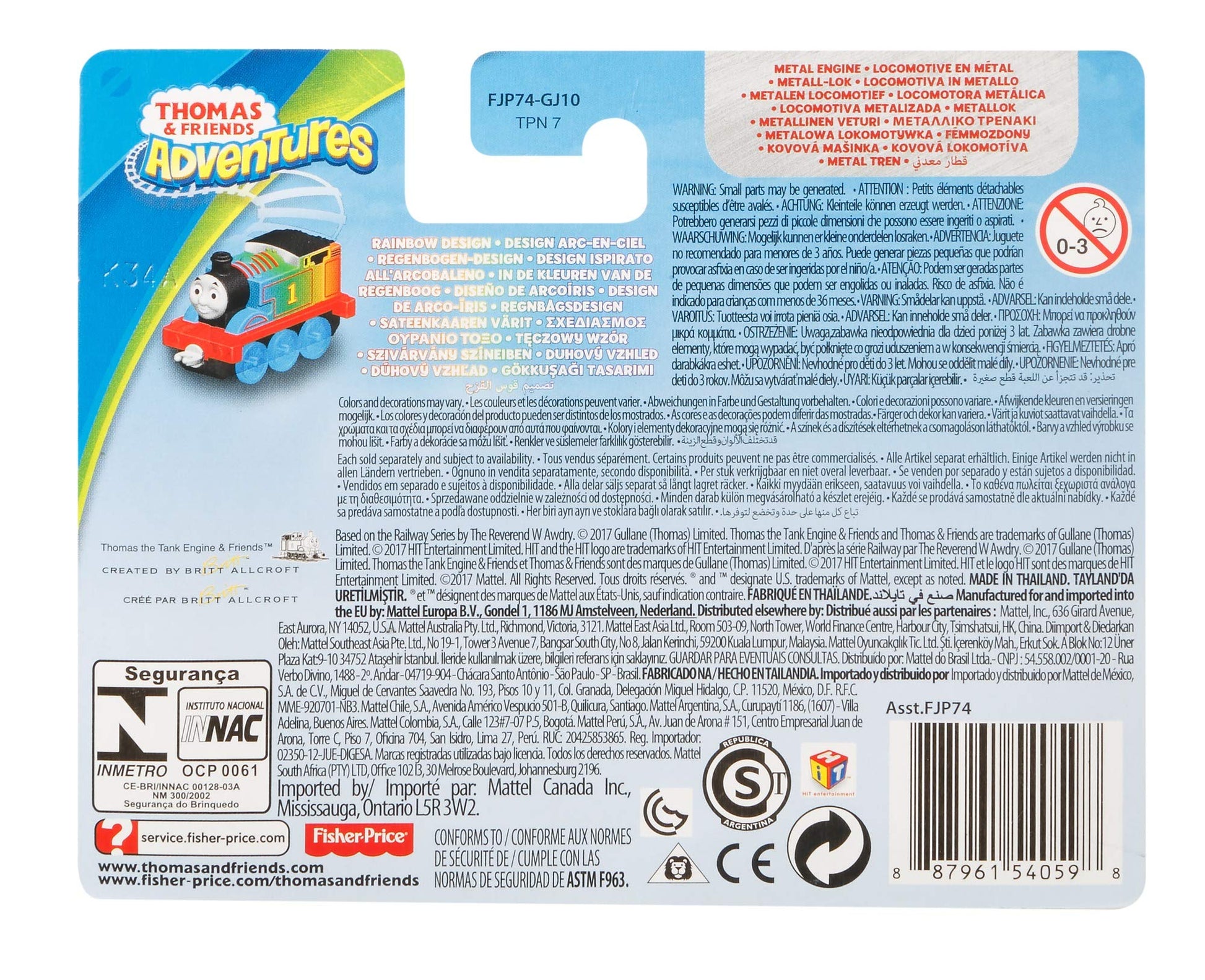 Product DescriptionThis Special Edition Rainbow Thomas is a durable die-cast train engine, specially styled with a fun rainbow design. With Thomas & Friends™ Adventures, your child and Thomas can go wherever their imaginations take them!Set Contains:Thomas & Friends Adventures Special Edition Rainbow Thomas