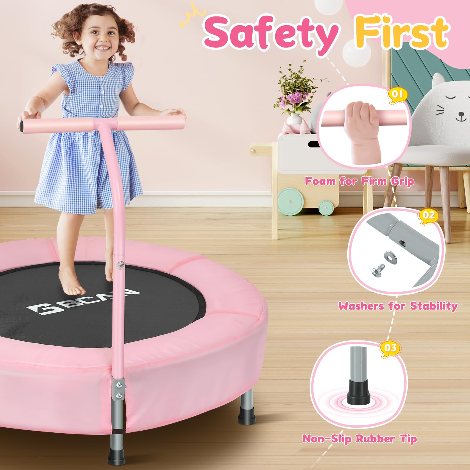 BCAN 36'' Mini Trampoline for Toddlers Ages 3 to 5 Toddler with Handle for Kids, Indoor/Garden Toddlers Trampoline with Super Safe Cover for Toddlers, Best Gift for Preschooler & Kids, Pink