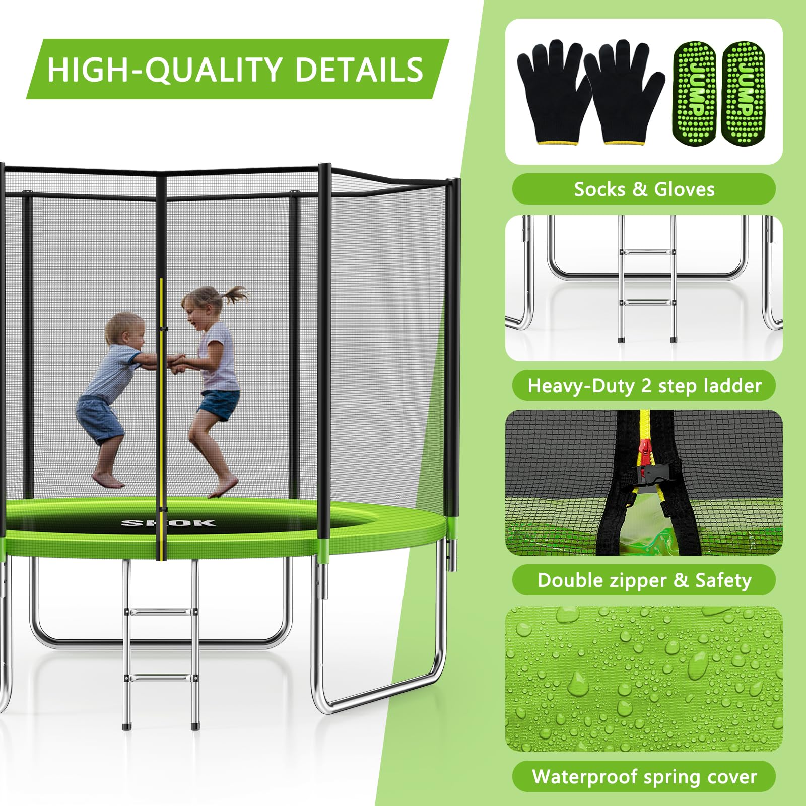 View compareSkok Black 8Ft Recreational Trampolines With Enclosure Net, Outdoor Trampoline For Kids And Adults, Astm Approved, With Spring P