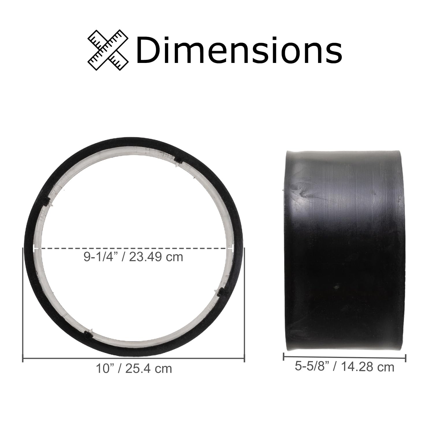 The 10x4.50-5 PVC plastic tire sleeve for drift trikes will make your slick tires even slicker and slippier. Made from hard PVC the replacement plastic sleeve was designed to limit the amount of rear tire traction and provide your ride with a faster drift effect. Coleman MotoTec Razor and many others use the 10x4.50-5 slick tire on their dift trike models.Note: These hard PVC drift sleeves are made to fit tightly onto the tire. In order to mount easily you should let some of the air out then lubricate the tire with soap suds before pressing the sleeve onto the rubber. The pressing may be easier with a wood or rubber mallet. When the sleeve is in its correct position just refill the tire with the correct air pressure. In addition the PVC sleeve may adhere to the rubber tire better by using several strips of self-adhesive grip tape (such as used on skateboard decks) on the sleeve's inner face. Specifications Outer diameter: 9-7/8 Inner diameter: 9-1/2 Width: 5-1/4