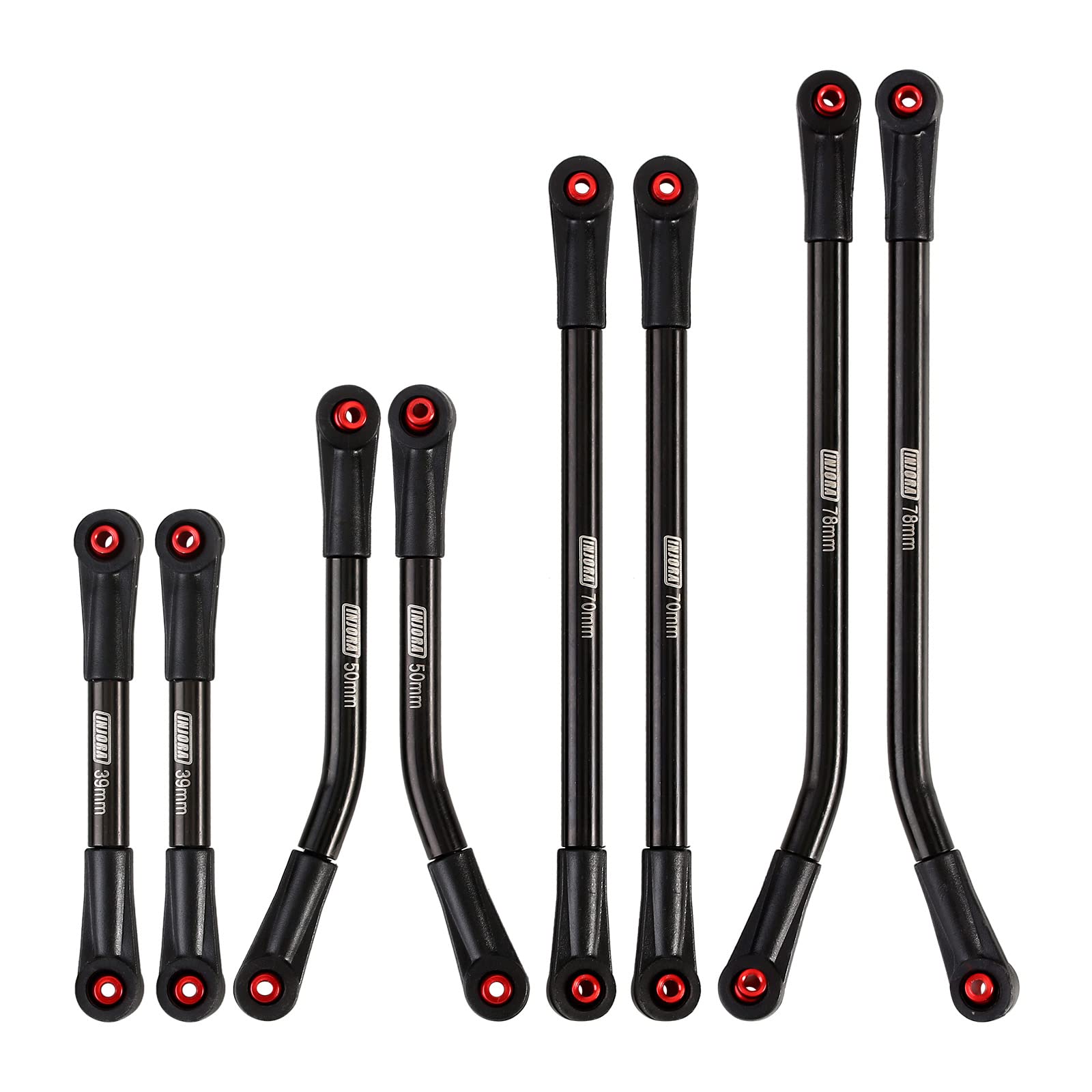Specifications: Links Material: Stainless Steel Rod Ends Material: Plastic Links Color: Black Weight: Black (30g/1.06oz) Suit For: Axial SCX24 Jeep Gladiator Package List: 1 * SCX24 High Clearance 4-Links Set