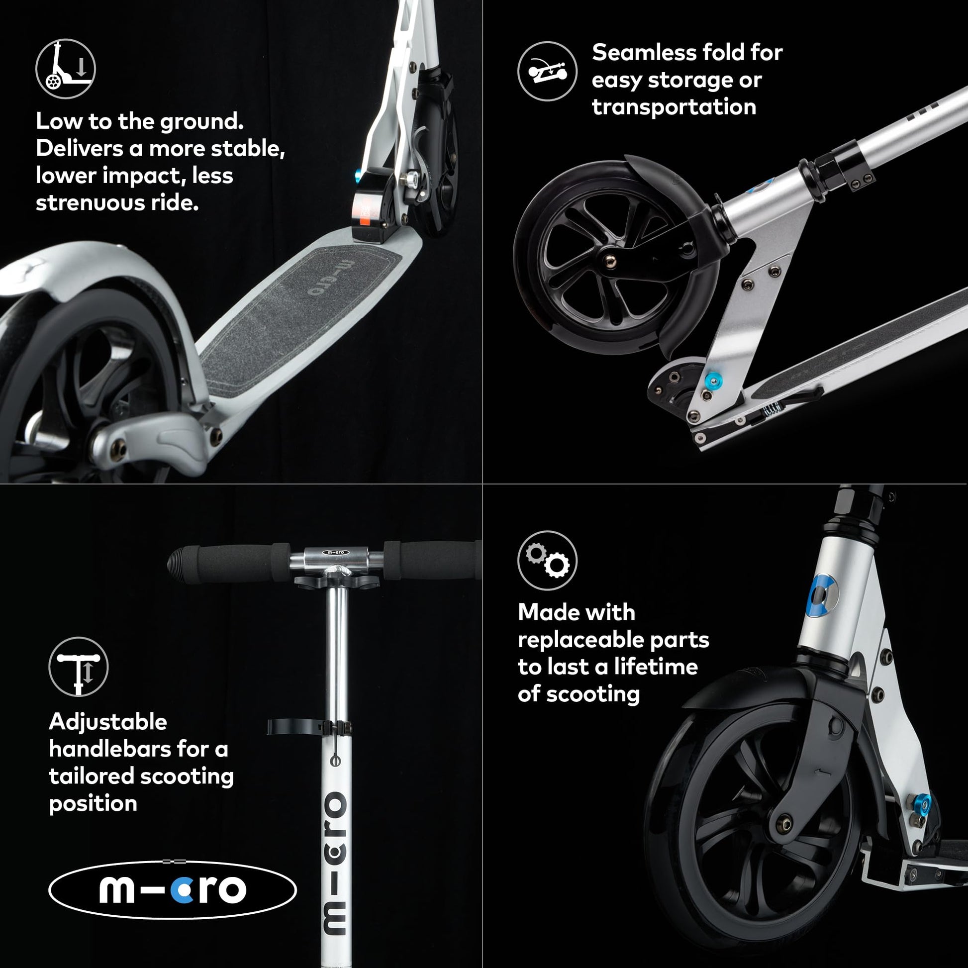Micro Scooters | Micro Classic mature-themed Scooter | Big Wheels | City Commuting | Foldable | Matt Silver