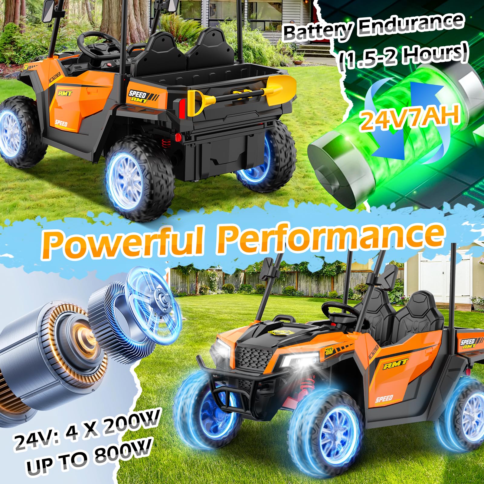 View compare2 Seater Ride on Dump Truck, 24V Ride on Big Toy with Dump Bed for Kids, 800W Electric Vehicle with Music Player, Shovel, LED Li