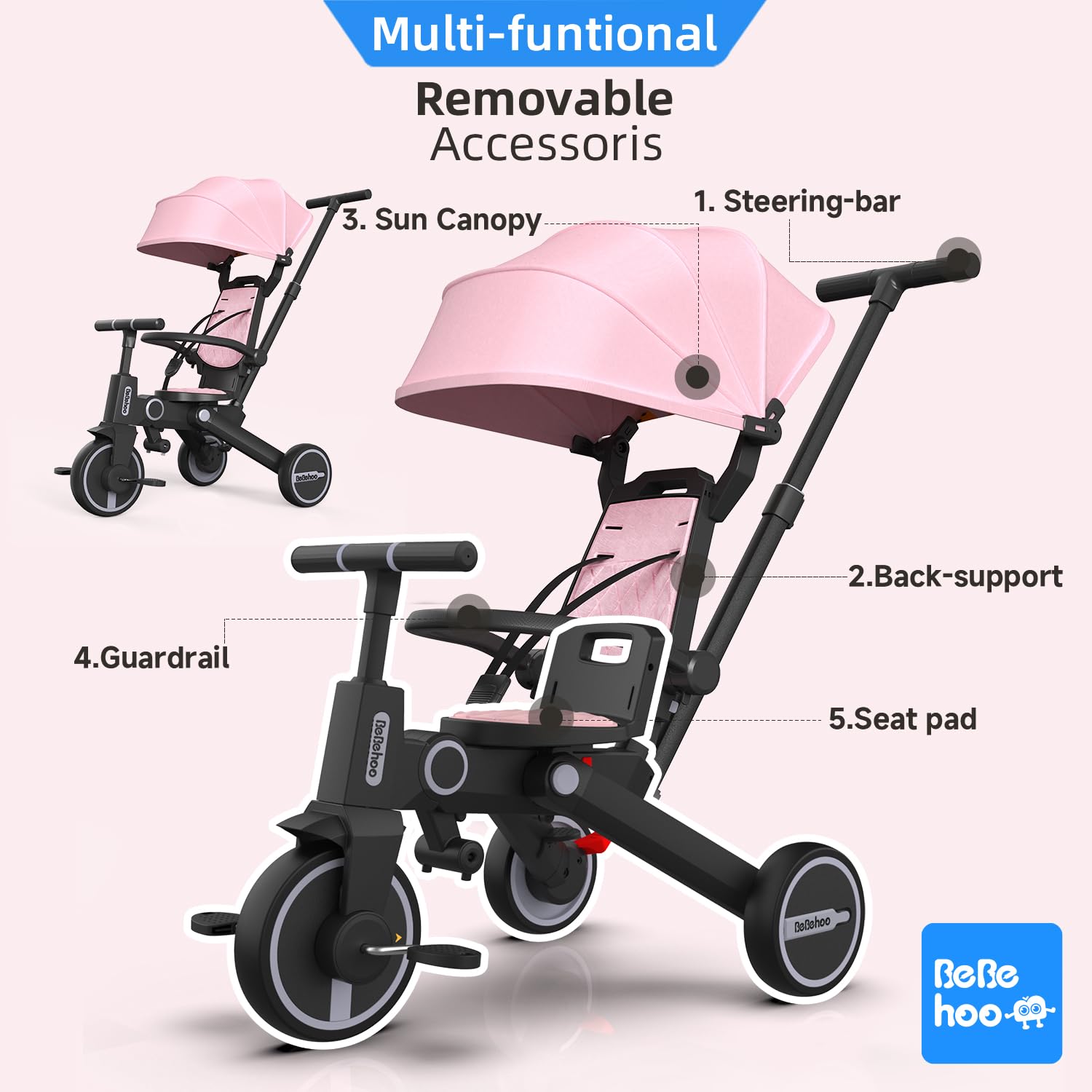 Bebehoo Tricycle Stroller for Toddler,Foldable Baby Tricycle,Kids Balance Bike with Push Handle,Toddlers Stroller Bike with 1 to