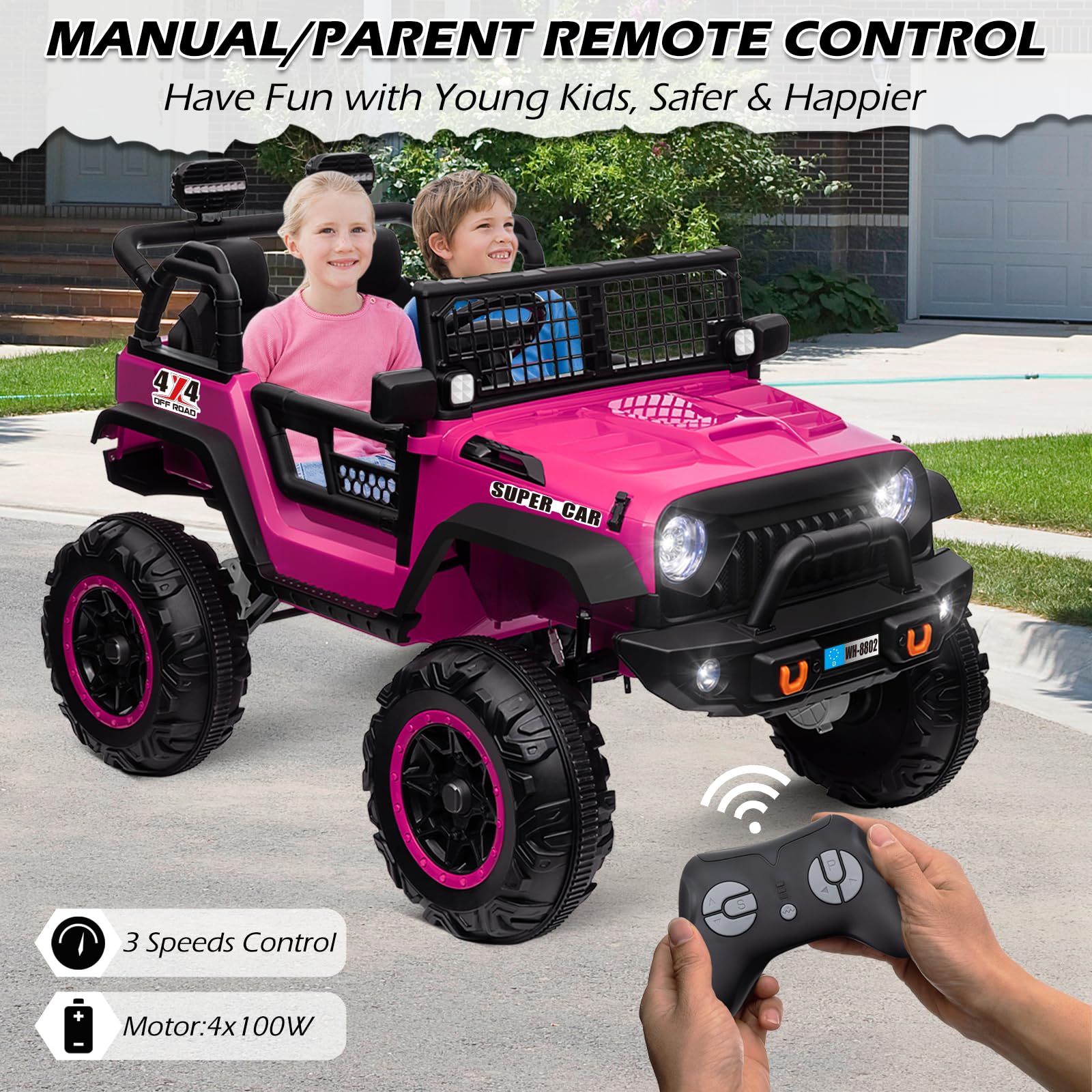 OTTARO 24V 4WD/2WD Switchable Ride on Cars, 2 Seater Kids Electric Vehicle Truck with 20 Inch Seater, 4x100W Motors, 4 Shock Abs