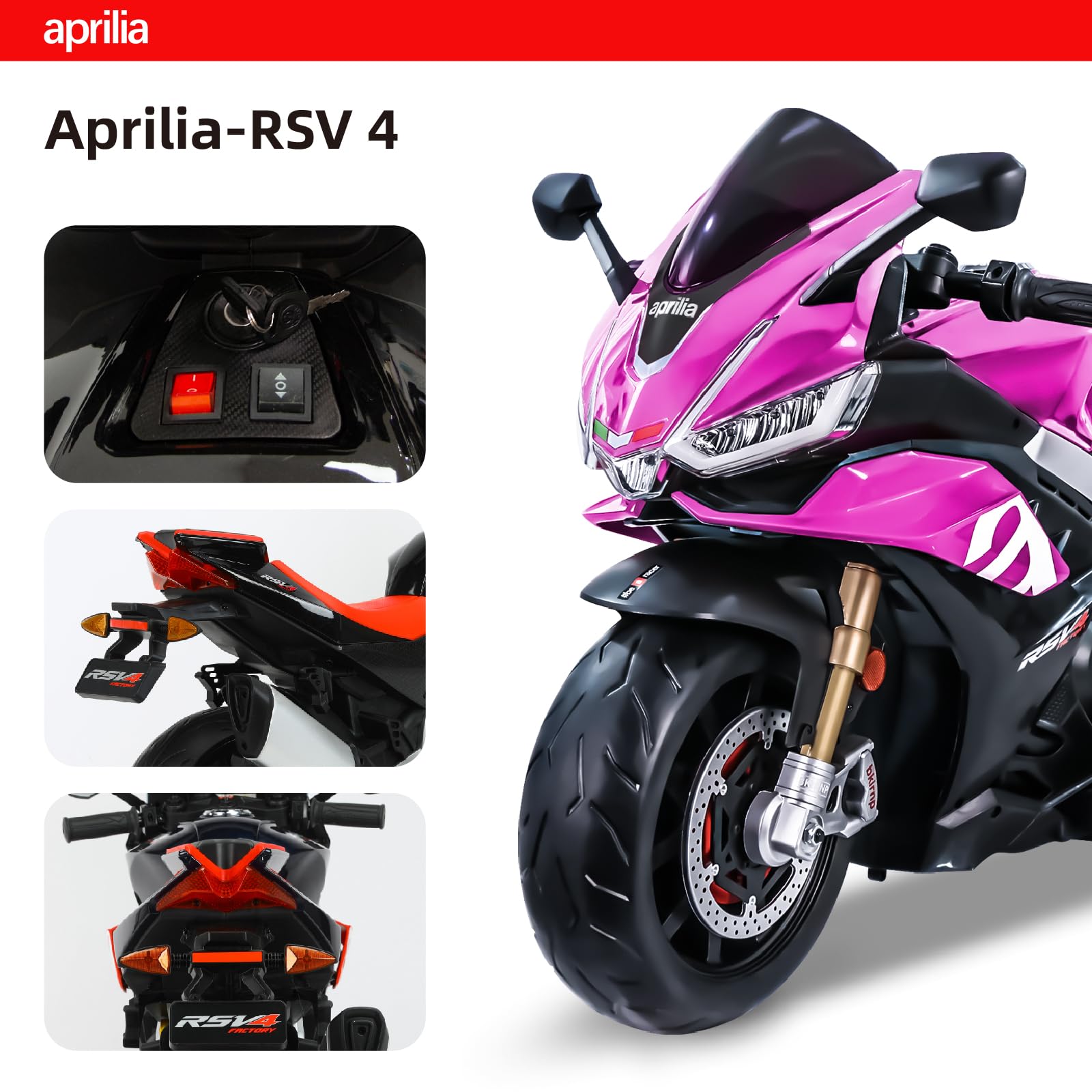 TCARAIWEN Aprilia Licensed 24V Kids Electric Motorcycle, Max Speed 10mph Ride-On Motorcycle with Training Wheels, Key Switch and