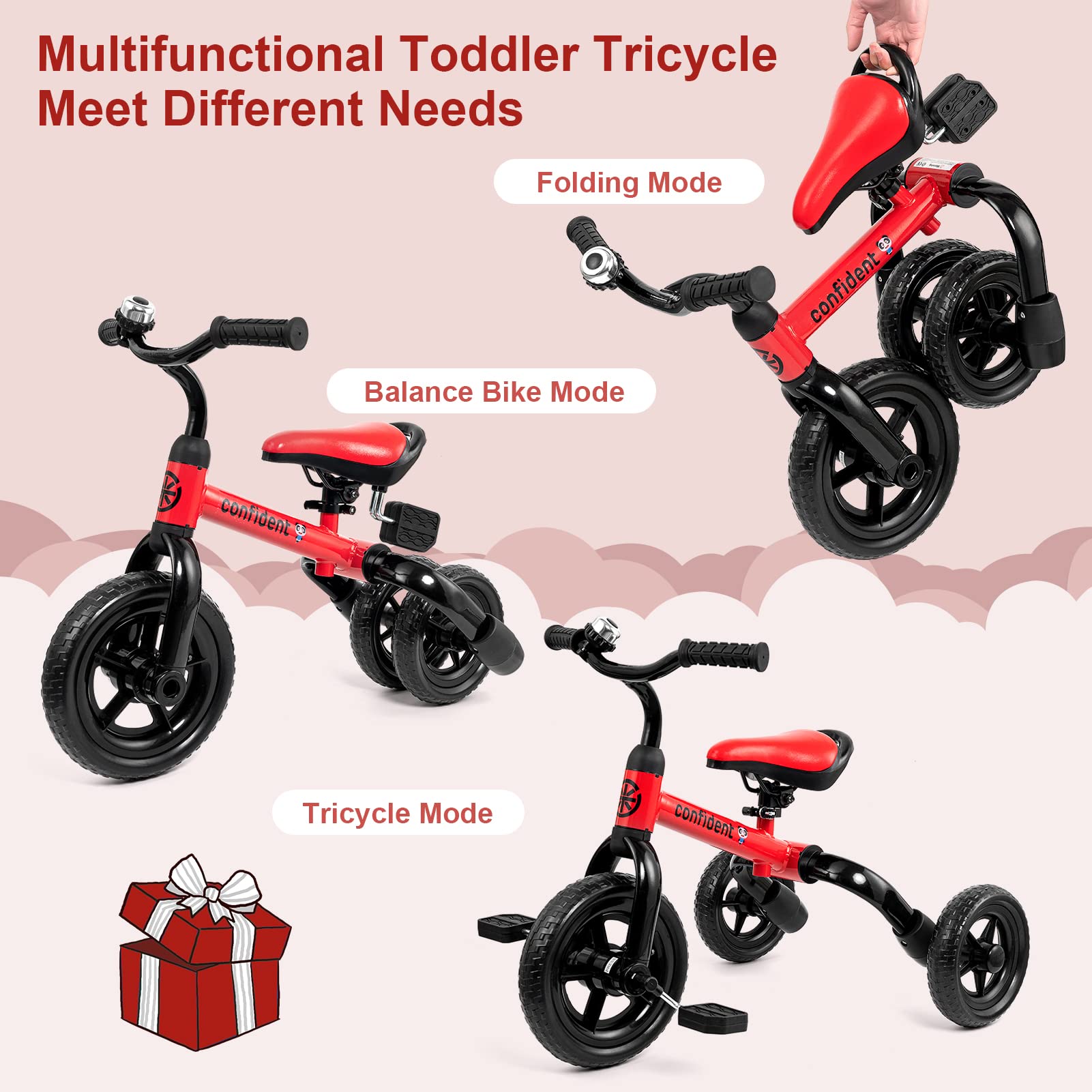 XPIY Tricycle for Toddlers Age 2 to 4 Years Old, 3 in 1 Folding Toddler Bike for Boys and Girls, Kids' Bike Trike with Detachable Pedal and Adjustable Seat (RED)