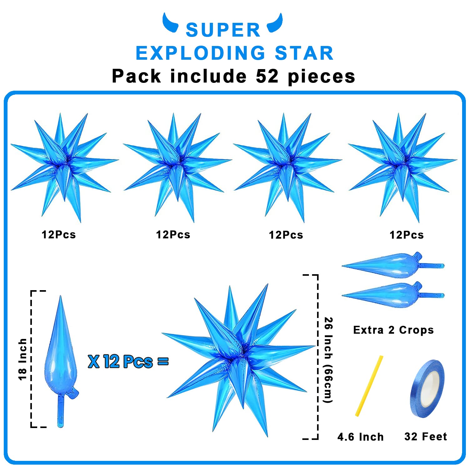 Funtoob - Add More Fun And Colors To Your Life ?Product Features? Blue Star Cone Balloons 50Pcs - About 4 Exploding Star Balloons Can Be Assembled. Stereoscopic And Individual. 1. Foil Star Balloon Let You Celebrate Special Moments With Your Kids,Friends And Family. 2. The Blue Starburst Balloon Is Quick And Easy To Inflate And Has An Automatic Sealing Feature. With Ribbon You Can Hang It Anywhere You Want. 3. Large Digital Foil Balloons Can Be Held And Photographed, Is The Perfect Ins Prop. 4. Star Balloons Metallic Can Hold Shape For Few Days And Can Continue To Decorate Your Home. ?Why Should You Choose Us ?? 1. This Blue Star Balloon Is Very Unique And Personalized, Boys And Girls Birthday Parties Are Applicable. 2. Let You Set Up More Simple. Foil Star Balloons With Your Favorite Color Balloons Can Be Matched. 3. Party Decorations Are Beautiful, Use Him To Dress Up Closets, Tv Walls, Windows, Curtains And Gardens All Look Good. ?Warm Tips? 1. Need To Use A Hand-Push Pump Or Foot Pump Controllable Tools To Pump, Inflate Less Than 80% To Prevent Bursting, The Use Will Be More Durable. 2. There May Be A Little Odor Due To The Long-Term Sealing Of The Ink. It Only Takes A Few Minutes Of Ventilation To Remove Odors. 3. Due To The Large Size Of The Exploding Star Balloon, We Do Not Recommend That You Use Helium For Inflation. Better For Hanging And Handheld Photography.