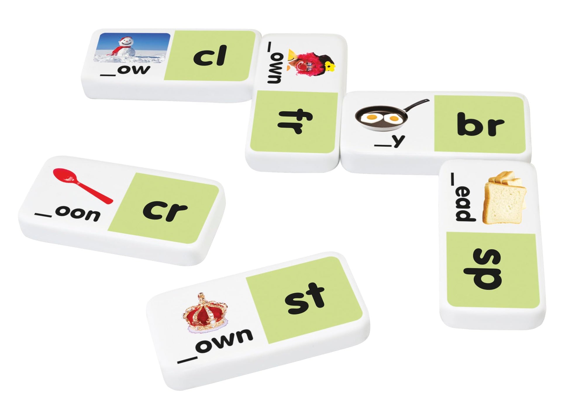 Blend dominoes include a 28 piece set on thick plastic dominoes. Children will love the feel of real dominoes as they complete the blend matching game.