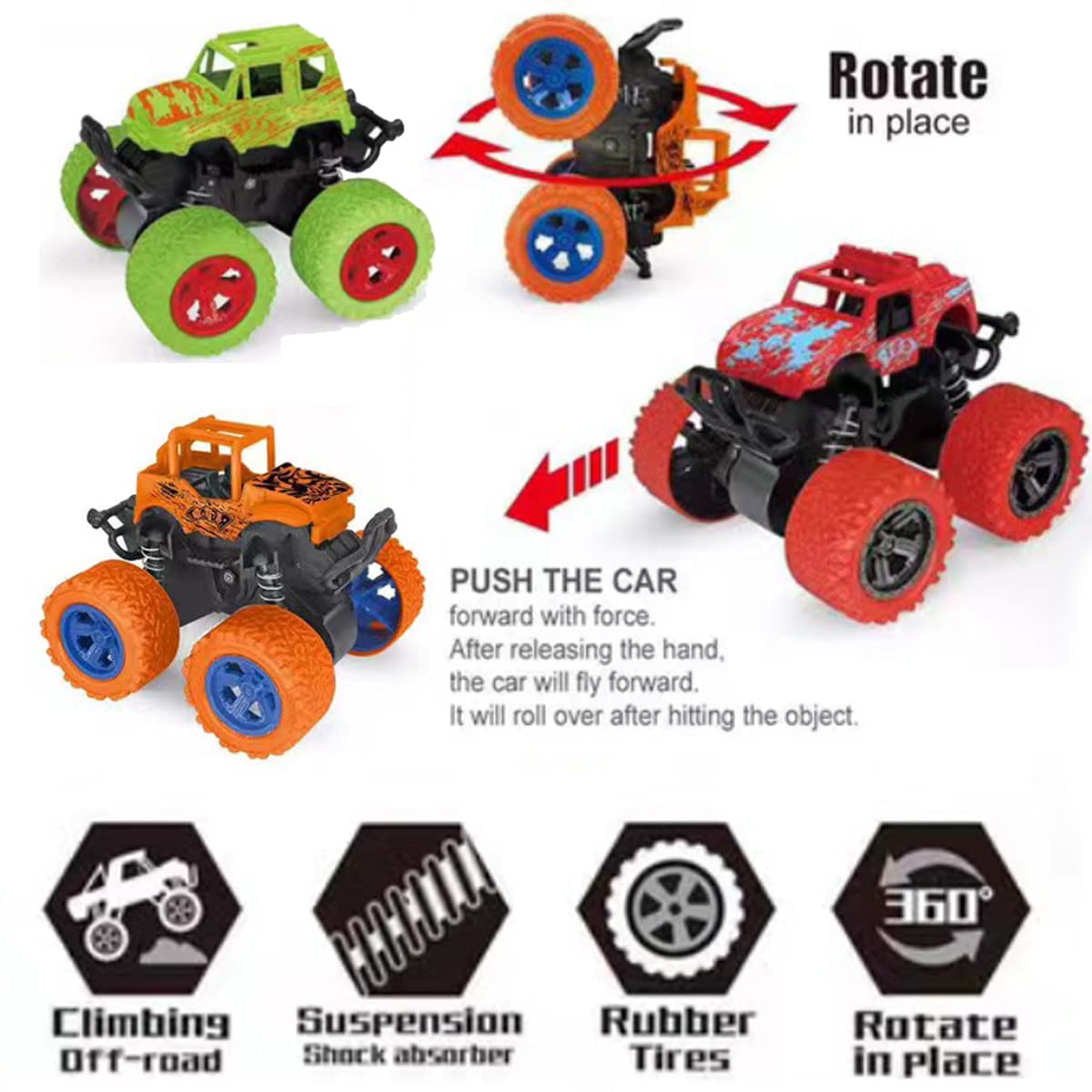 Specifications: Color: Green Quantity: 1 PCS Material:ABS Item Name: Monster trucks toys Truck Size: 3.6x3.4x3 Inces (9.2x8.7x7.5cm) What you get: 1 Pcs car toys Features: Surprise truck toys gifts Improve children's learning ability, improve the ability to explore High-quality imported ABS material, crash-proof, environmentally friendly, and BPA Free. Using 4 spring shock absorber design, all kinds of road conditions like walking on the ground No battery, friction power, inertia drive Build interactive, social and motor skills during play Multi-color models to meet different preferences Using high quality inflatable rubber wheel, anti-skid, anti-earthquake, strong grip Notice: Not for Children under 4 Yrs. The dimensions and weights are measured manually, and errors may exist About us: Our promise the premium quality and the best service to all our customer. Each Toys set is thoroughly and rigorously tested before leaving the factory, if you have any question or problem with it, please let us know and we will help you solve it.