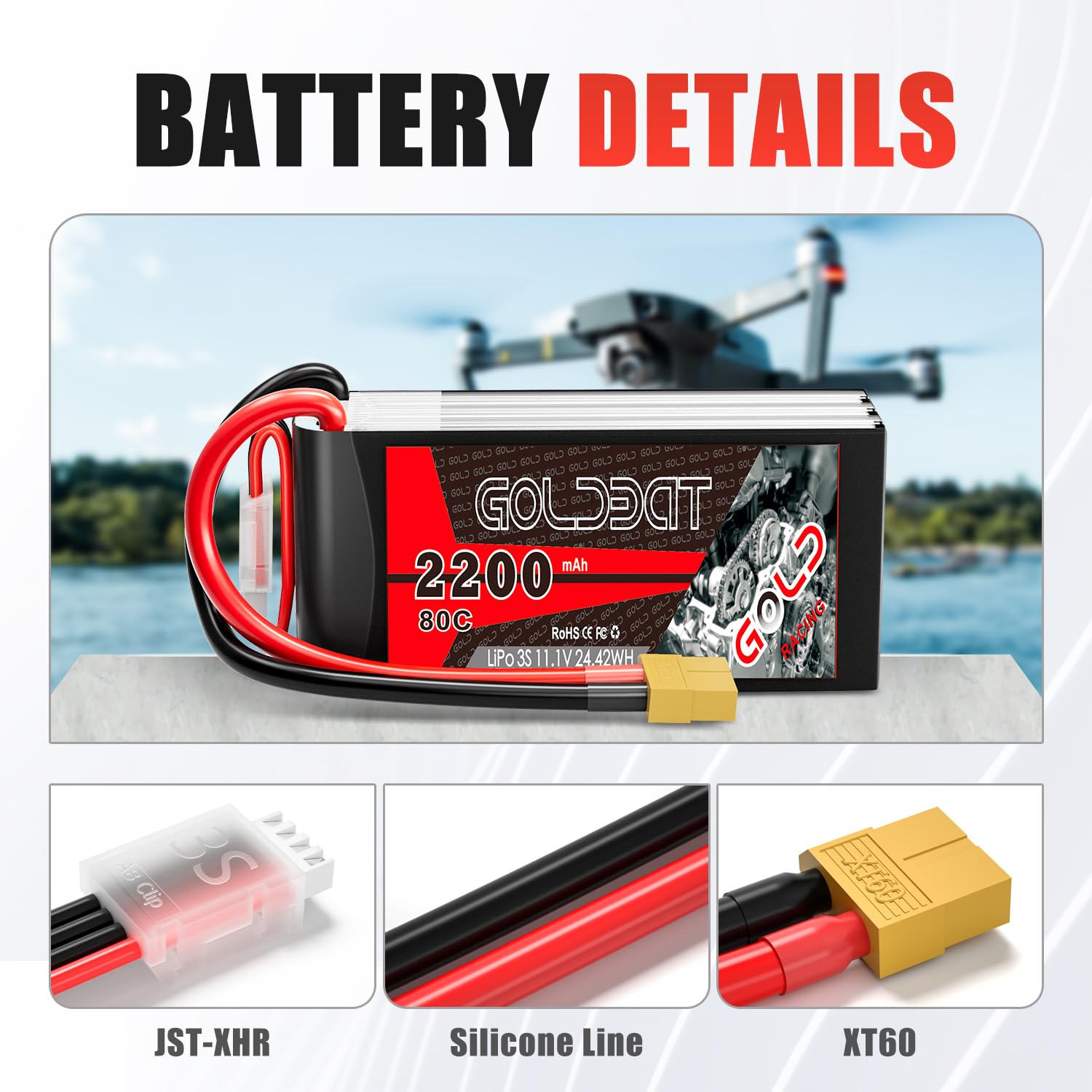 Goldbat 3S 11.1V Lipo Battery 2200Mah 80C Xt60 Connector 3S Short Pack Battery For Rc Car Vehicles Rc Boat Drone Airplane Quadco