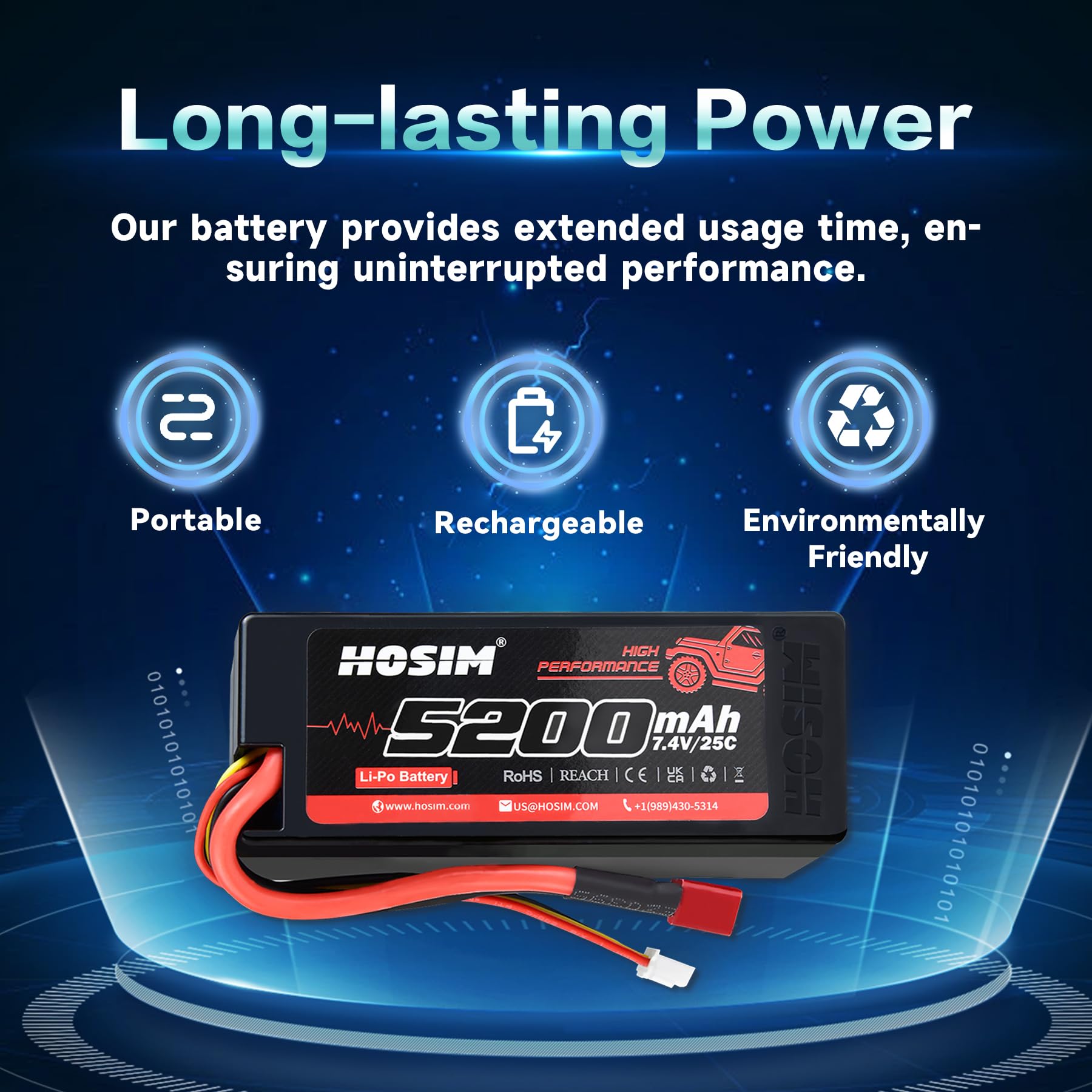 Hosim 2Pcs 2S 7.4V 25C 5200Mah Lipo Battery Rc Car Truck Rc Vehicles Boat Battery Fit For X08 X07 X07W High Speed Rc Cars 1/10 S