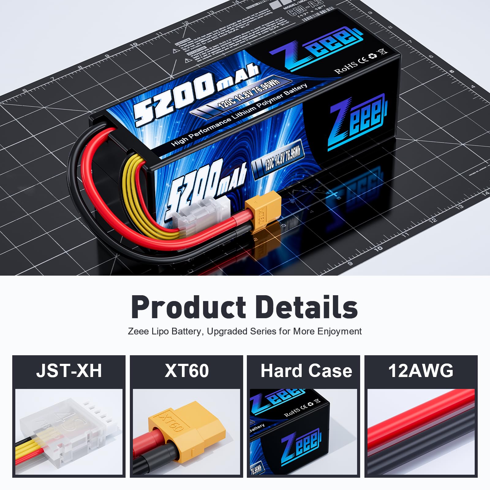 View compareZeee 4S Lipo Battery 5200mAh 14.8V 120C Hard Case RC Battery with XT60 Plug for RC Car Truck Vehicles RC Buggy Truggy 1/10 Scale