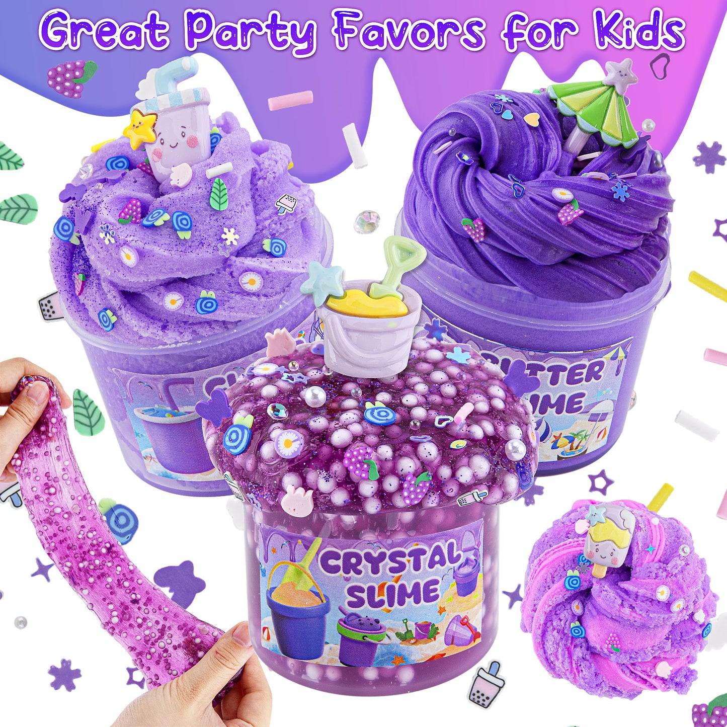 - Variety of Textures: The kit includes 3 different textures of slime: 2 packs each of purple butter slime, purple cloud slime, and purple clear crystal slime, providing a delightful tactile experience.