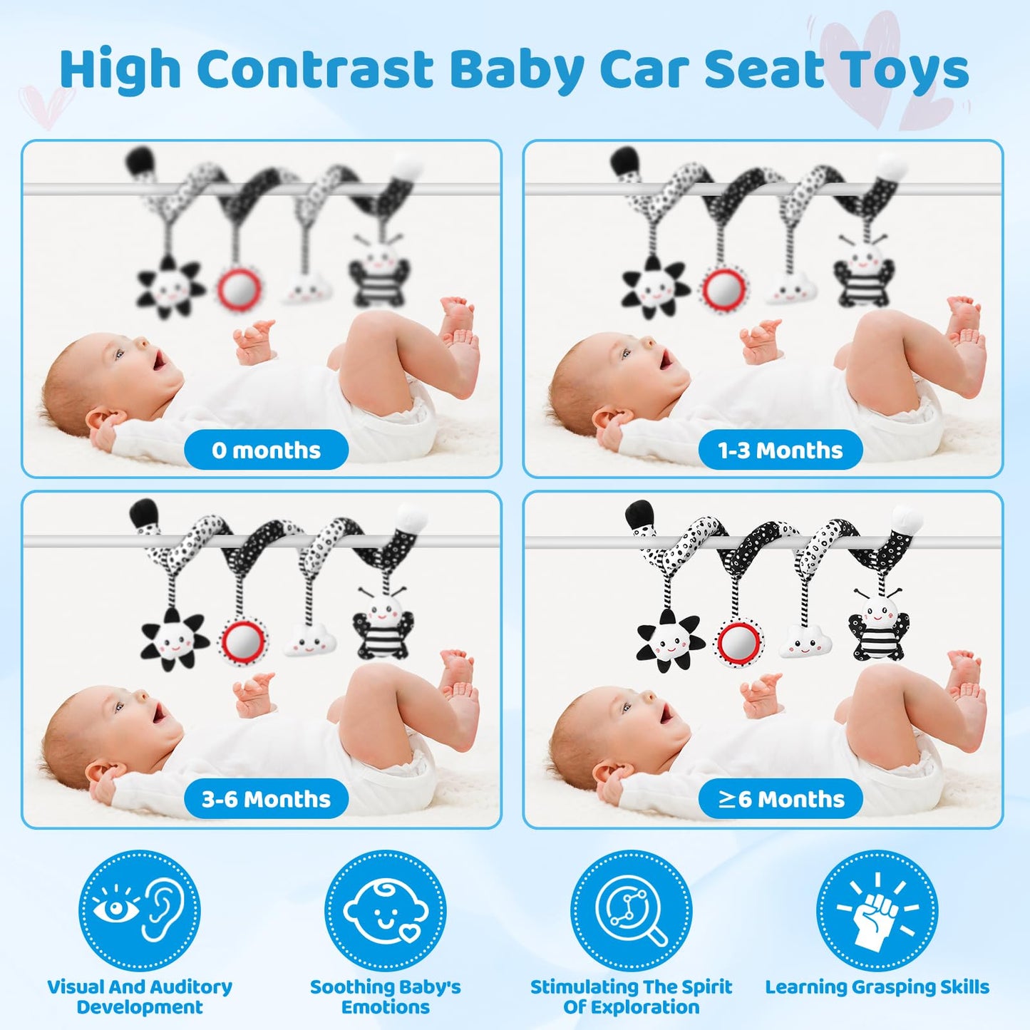 Ajsupojouet Car Seat Toys Hanging And Stroller Toys For Babies 0-6 Months,High Contrast Baby Toys For Newborn 0 3 Months Brain D