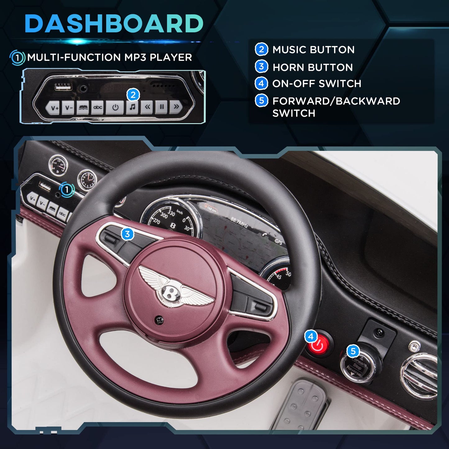 View compareAosom Bentley Mulsanne 12V Ride On Car, Battery Powered Car With Remote Control, Suspension, Startup Sound, Led Lights, Mp3, Horn, Music, Forward And Backward, 2 Motors, White