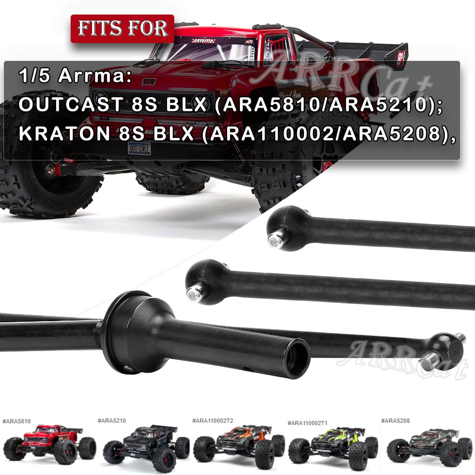 ???Fits For?: 1/5 Arrma OUTCAST 8S BLX (ARA5810); 1/5 Arrma KRATON 8S BLX (ARA110002T2/T1). | ???Upgraded in June 2022 ?:The drive shaft made from harden steel #45 for greater strength and stable driving performance.It is maximum durability and for long time service life. | ???More Strength?: The dogbone is with more turning power and more sturdy use ,High reliability, ensuring smooth transmission.The rc car upgrades parts highly increase the strength and precision. | ???ARRCat Guarantee?If you are not 100% completely satisfied with our products, please do not hesitate to contact us to request a refund or exchange! Your Satisfaction is Our Main Priority. | ???Easy to Assemble?:Original part#: ARA310932 & ARA310926 & ARA310933.These drive shaft are easy to use, you can directly use them on your RC car model.
