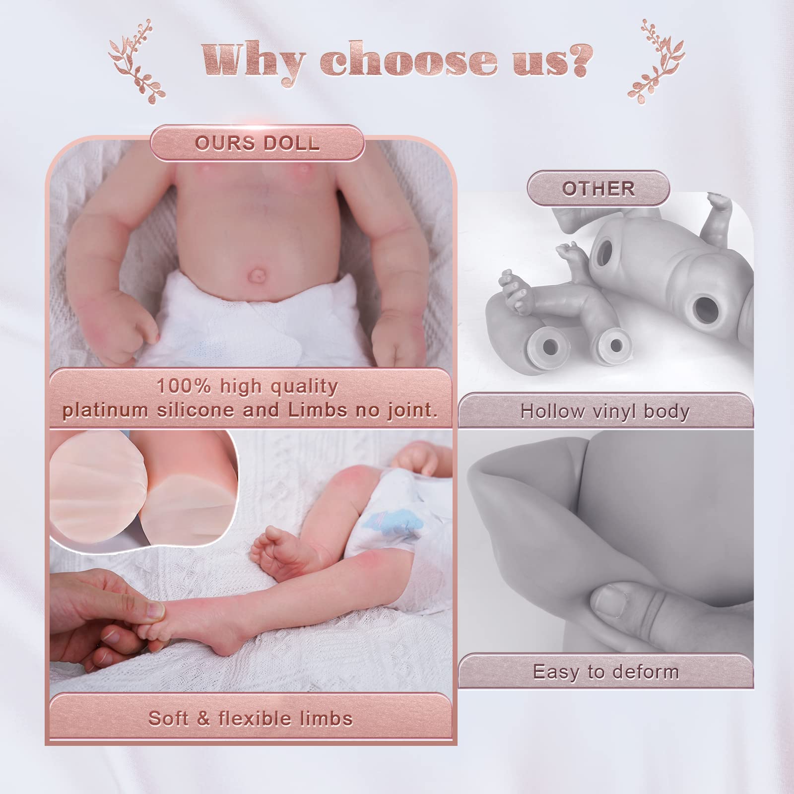 Full Silicone Baby Doll: Our Reborn Baby Doll Is Lovingly Handcrafted From High-Quality Silicone Materials, With A Soft And Realistic Texture, Just Like A Real Baby, Allowing Children To Better Learn How To Take Care Of A Little Life. | Soft & Lifelike Details: This Silicone Baby Doll Has Hand-Painted Eyebrows, Realistic Wrinkles, Delicate Veins And Belly Button. Her Flexible And Soft Limbs Support You To Pose Or Knead. These Details Make The Dolls More Lifelike, Enhancing Your Child'S Play Experience And Imagination. | Cute Silicone Reborn Baby Size: This Anatomically Correct Baby Boy Measures In 16 Inches From Head To Toe, And Weighted In 5.5Lb(2.5Kg). Her Full Soft Silicone Body Like Real Baby Skin Super Floppy, Bring You Real-Touch Feelings Makes Her Easy To Cuddle Like A Real Baby, You Can Interact With Her As You Like. | Gift Ideas: Our Newborn-Baby Girl Doll Is Perfect As Birthday Present And Christmas Gift And Fits For Home Activities, Role Play, And Parenting Games. And She Could Not Only Accompany Grandma, But Also Could Be Suitable For Mum And Hobbyists. | Package Includes: He Wears Preemie To Newborn Sizes, Come With A Nice Gift Box And A Full Set Of Accessories For Nursing Newborns. Package Includes: 1 X Baby Doll, 1 X Swaddler, 1 X Birth Certificate, 1 X Bear Toy, 1 X Nursing Bottle.