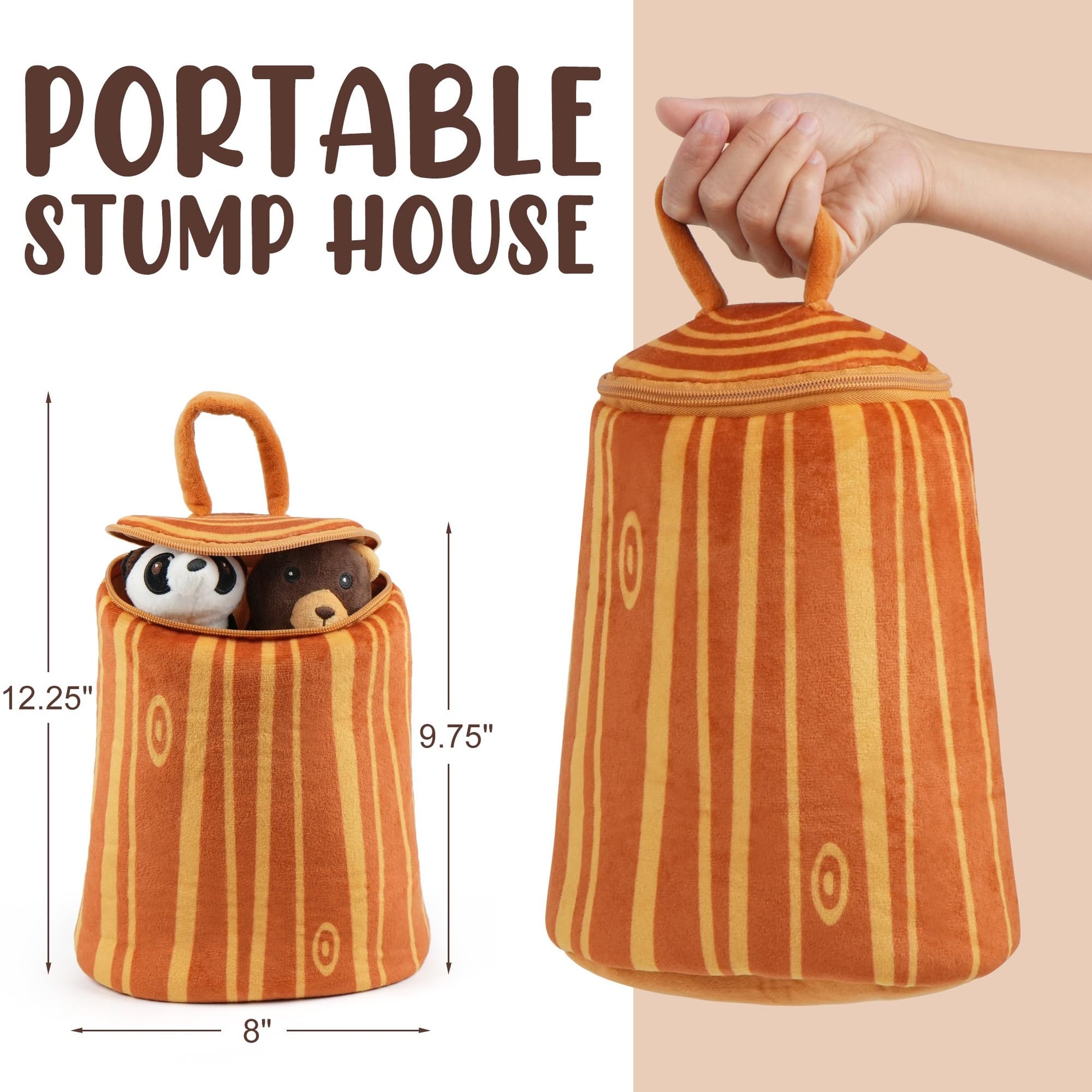 Benben Stuffed Animals, 5 Small Forest Animals With Tree Stump Carrier Set, Plush Toy For Kids Toddlers, Bears, Panda, Koala, Polar Bear Plushies Gift For Baby Shower, Stocking Stuffers
