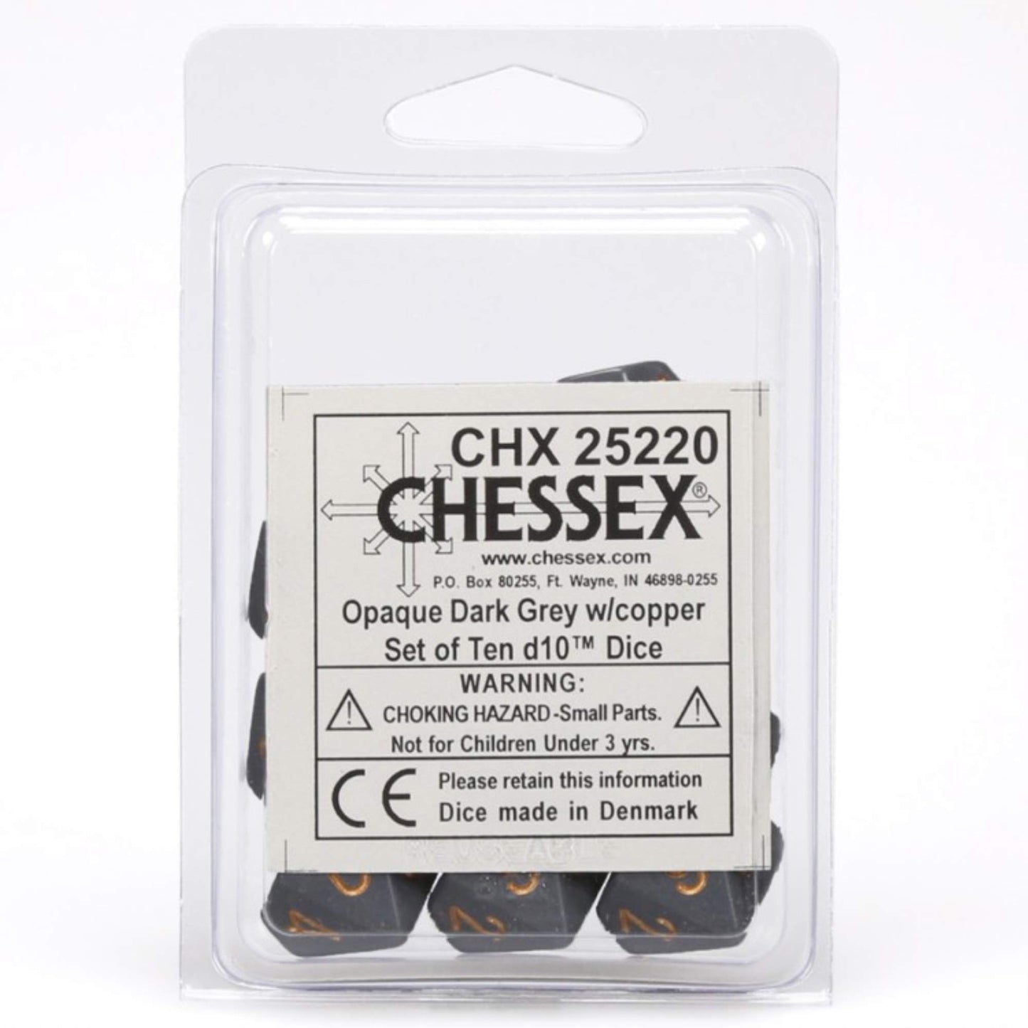 - Q: How many dice are included in the Chessex 25220 set? A: The Chessex 25220 Accessories set includes a total of 10 ten-sided (D10) dice.